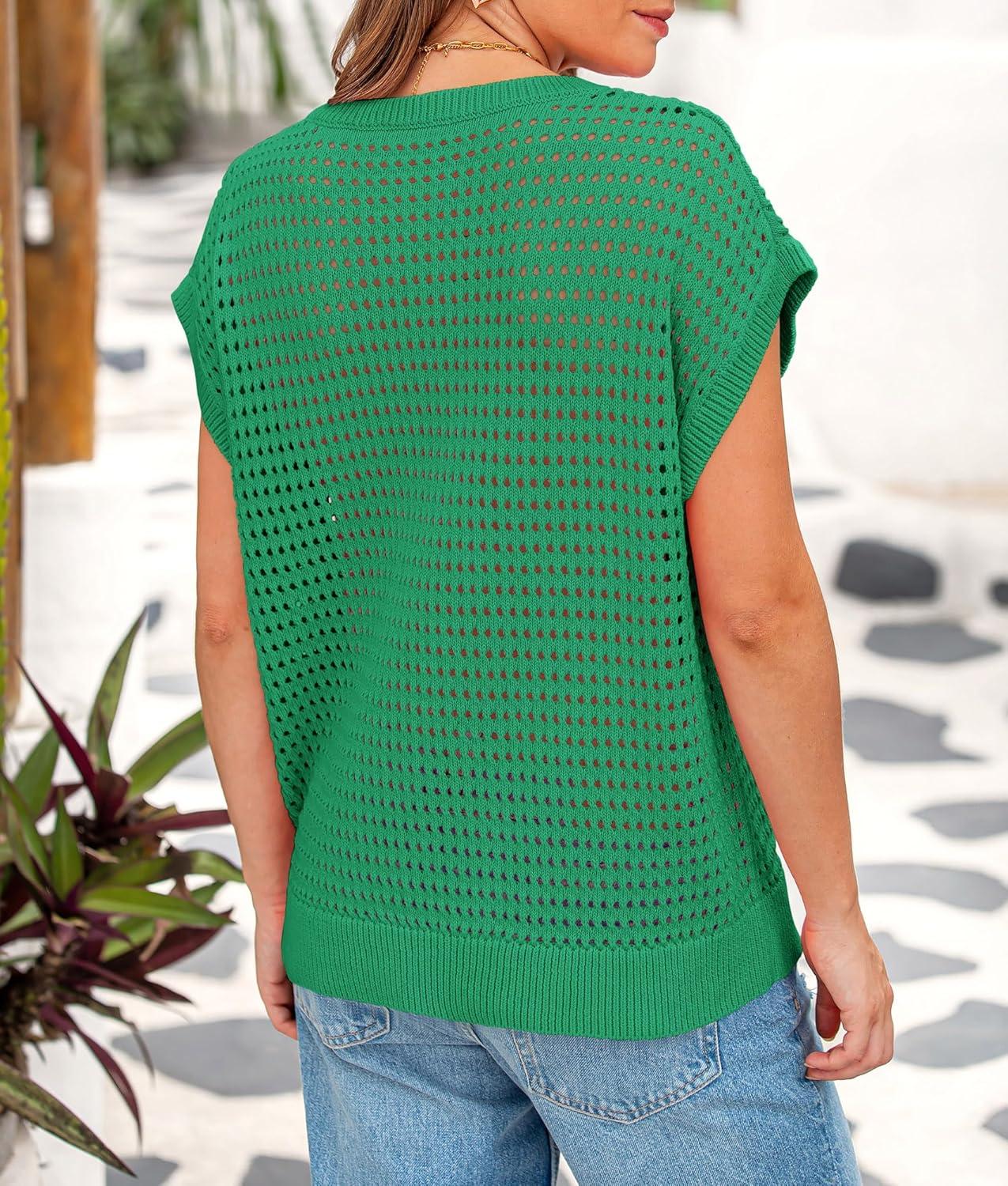 PRETTYGARDEN Womens Spring Tops 2025 Summer Shirts Crochet Cap Sleeve Sweater Pullover Cute Beach Vacation Clothes(Green)