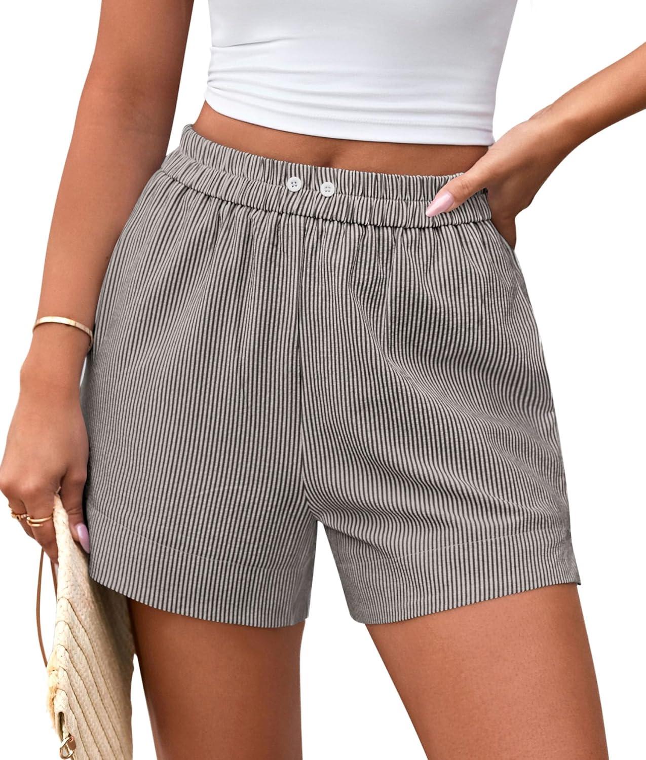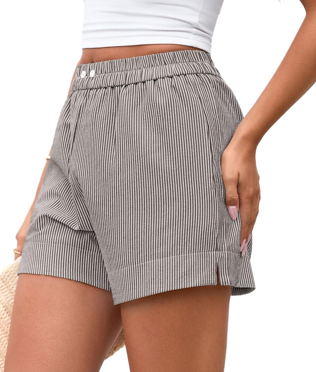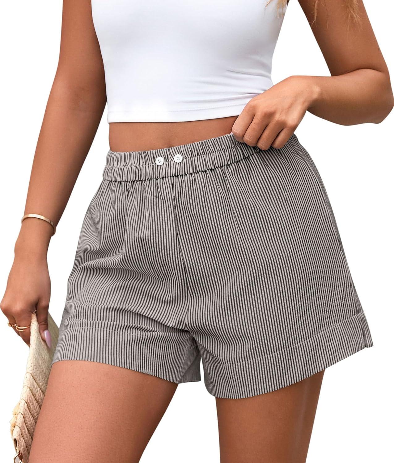 PRETTYGARDEN Women’s Striped Boxer Shorts Summer 2025 Trendy Casual Elastic Waist Lounge Sleep Pajama Bottoms Beach Shorts(Striped Black White)