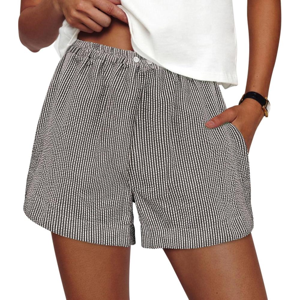 PRETTYGARDEN Women's Striped Boxer Shorts Summer 2025 Trendy Casual Elastic Waist Lounge Sleep Pajama Bottoms Beach Shorts(Striped Black White)