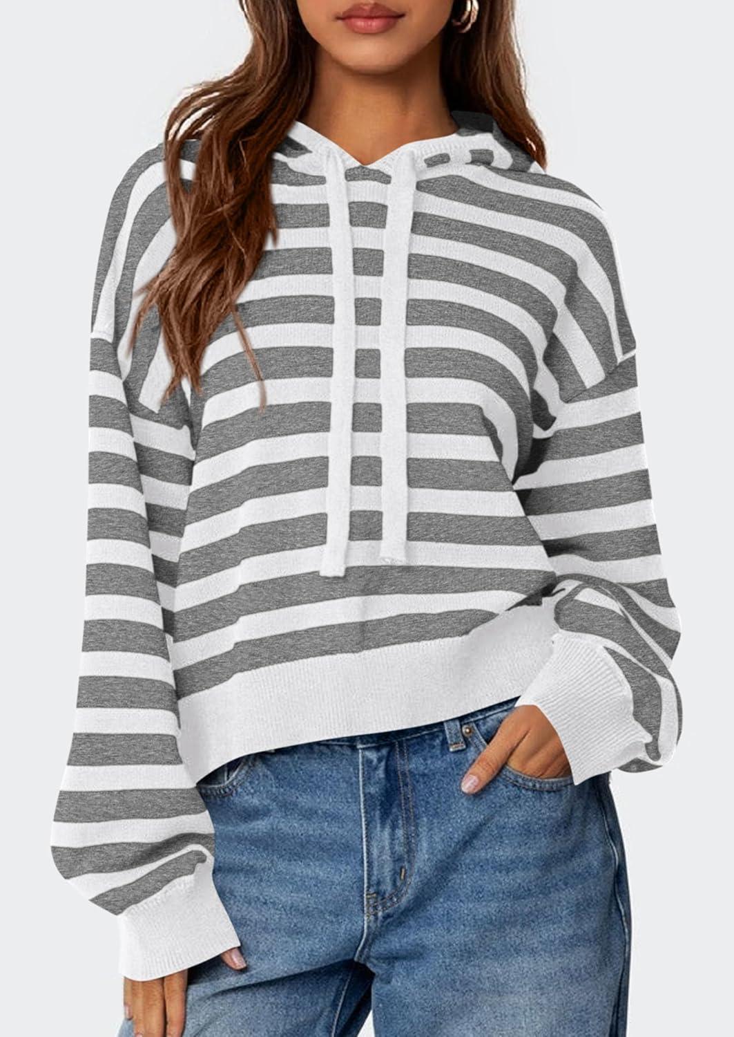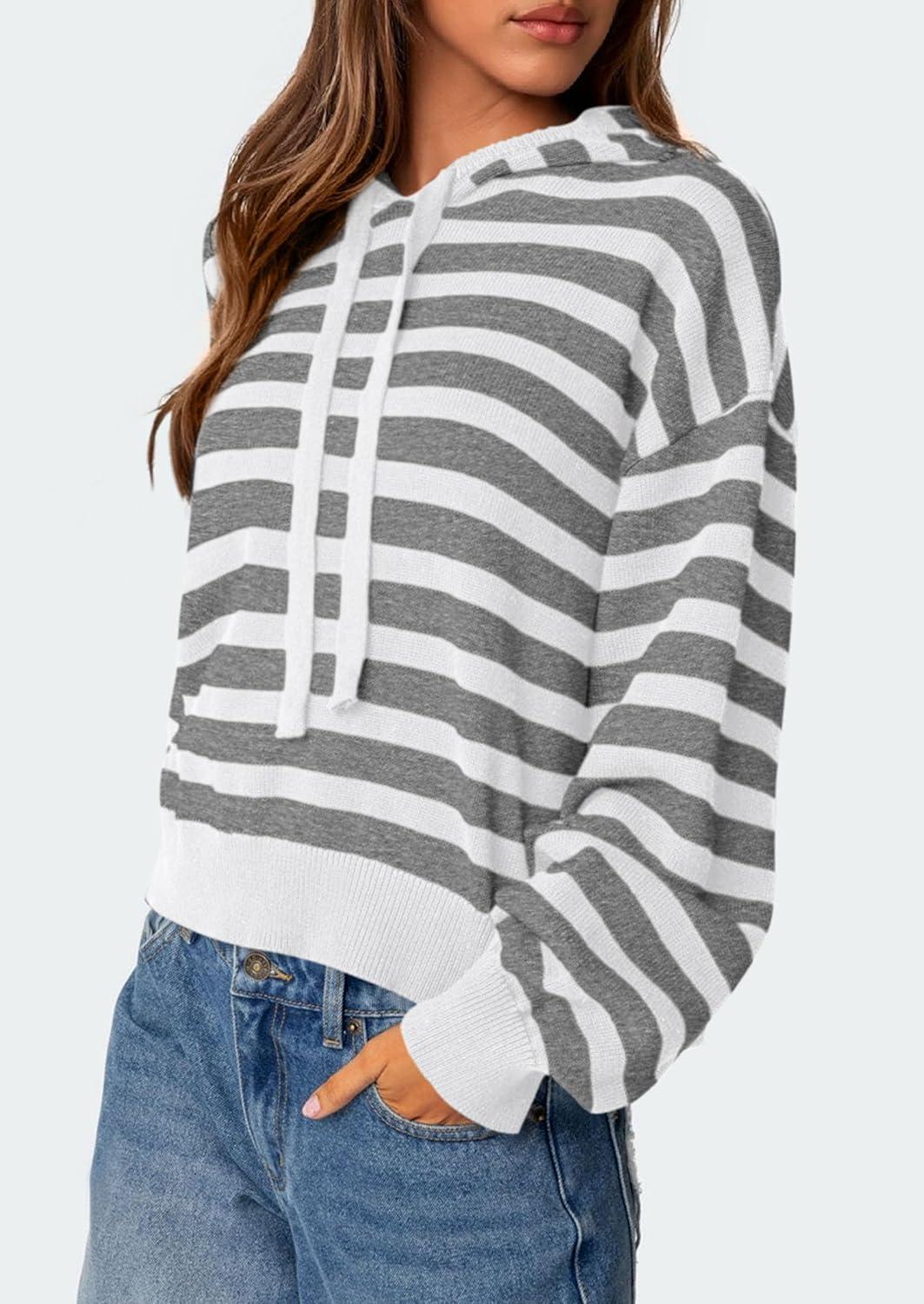 PRETTYGARDEN Womens Striped Sweaters 2025 Fall Pullover Hoodies Y2K Casual Long Sleeve Tops Winter Fashion Clothing(Striped Grey White)