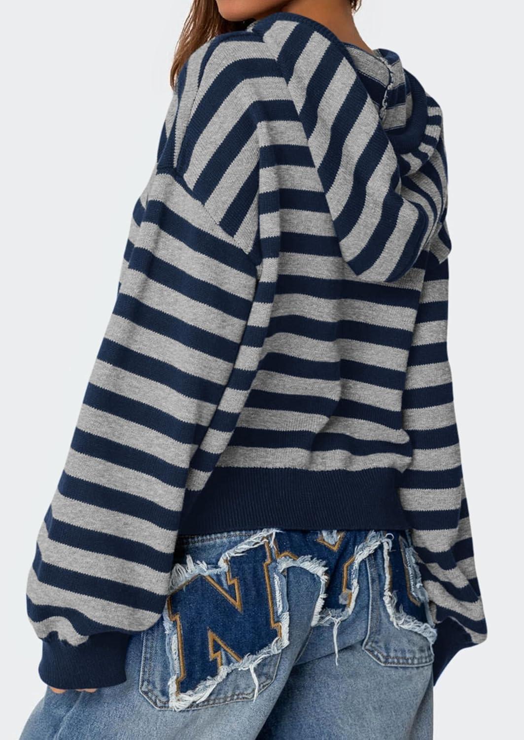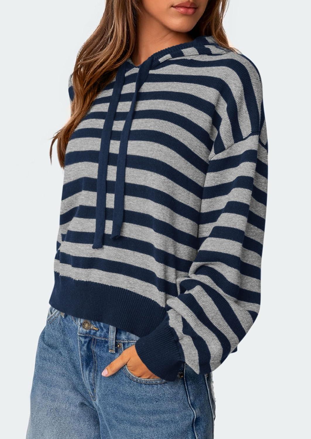 PRETTYGARDEN Womens Striped Sweaters 2025 Fall Pullover Hoodies Y2K Casual Long Sleeve Tops Winter Fashion Clothing(Striped Navy Grey)