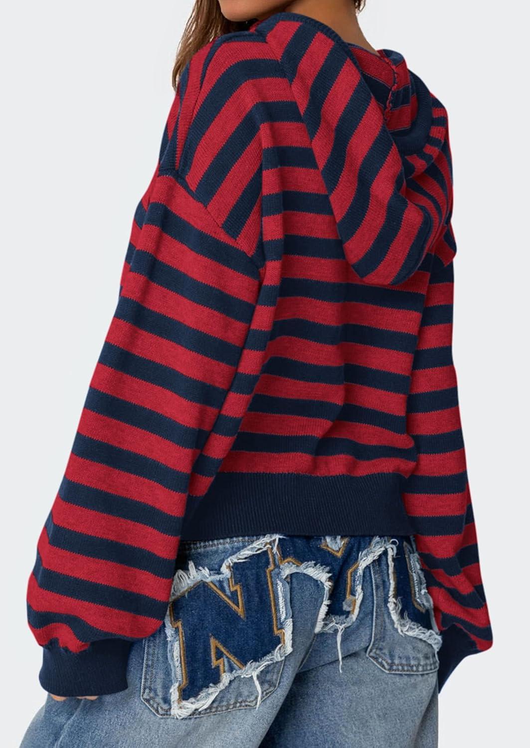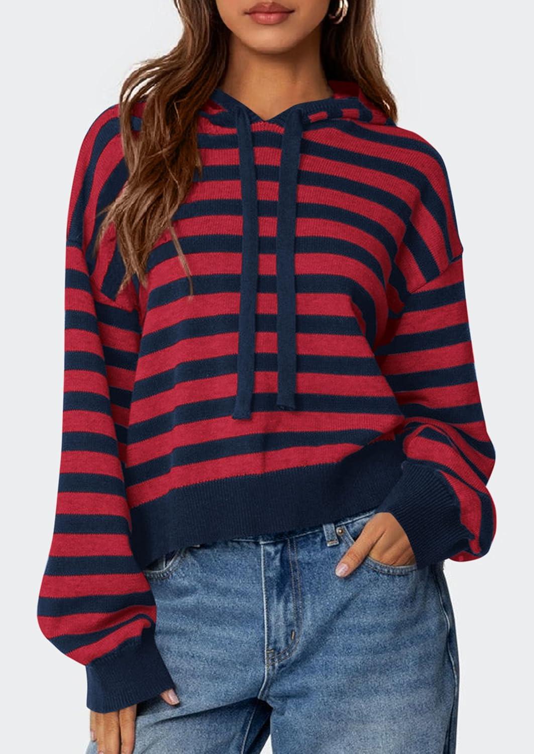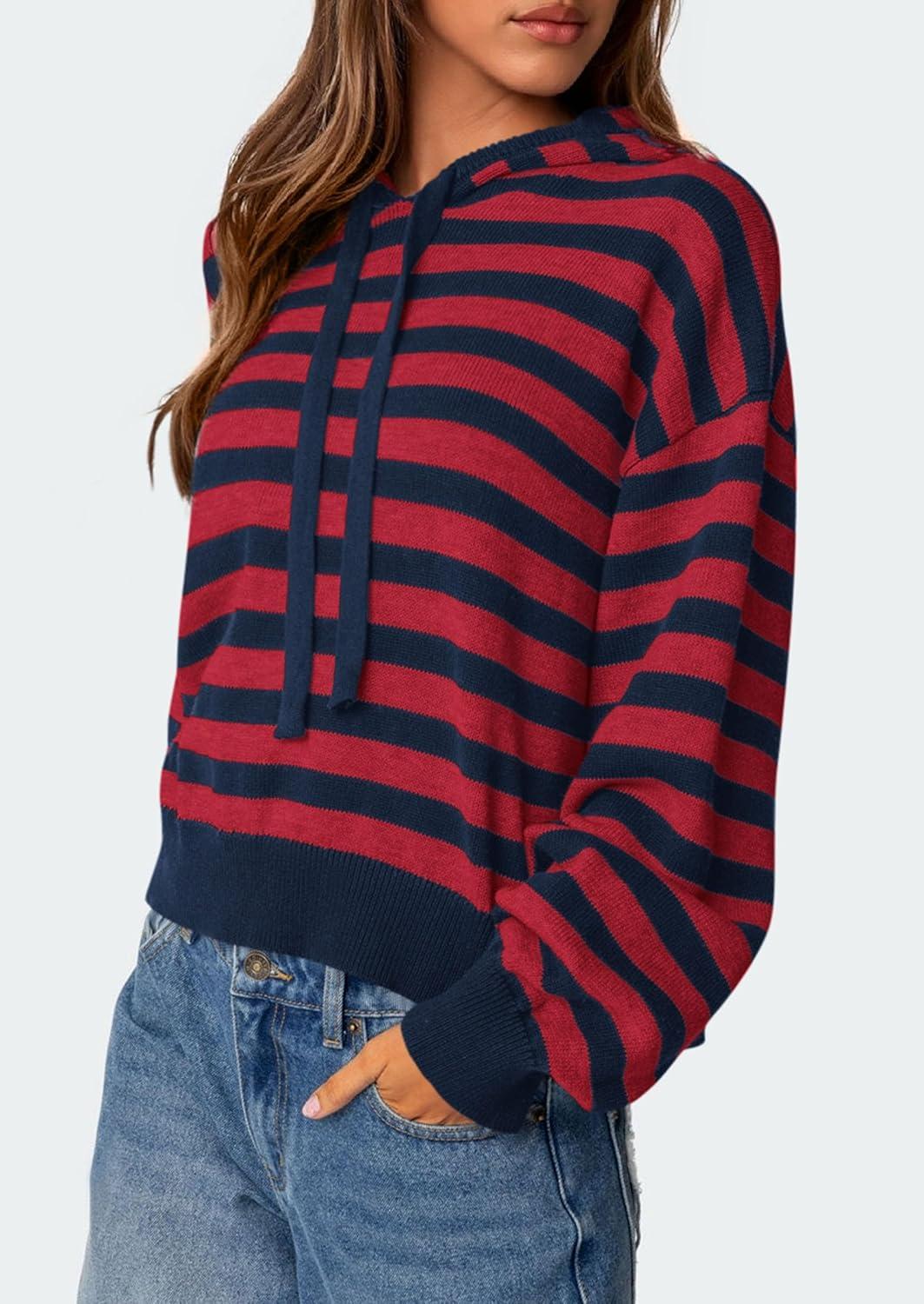 PRETTYGARDEN Womens Striped Sweaters 2025 Fall Pullover Hoodies Y2K Casual Long Sleeve Tops Winter Fashion Clothing(Striped Navy Red)