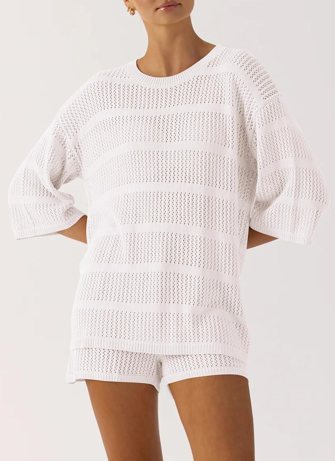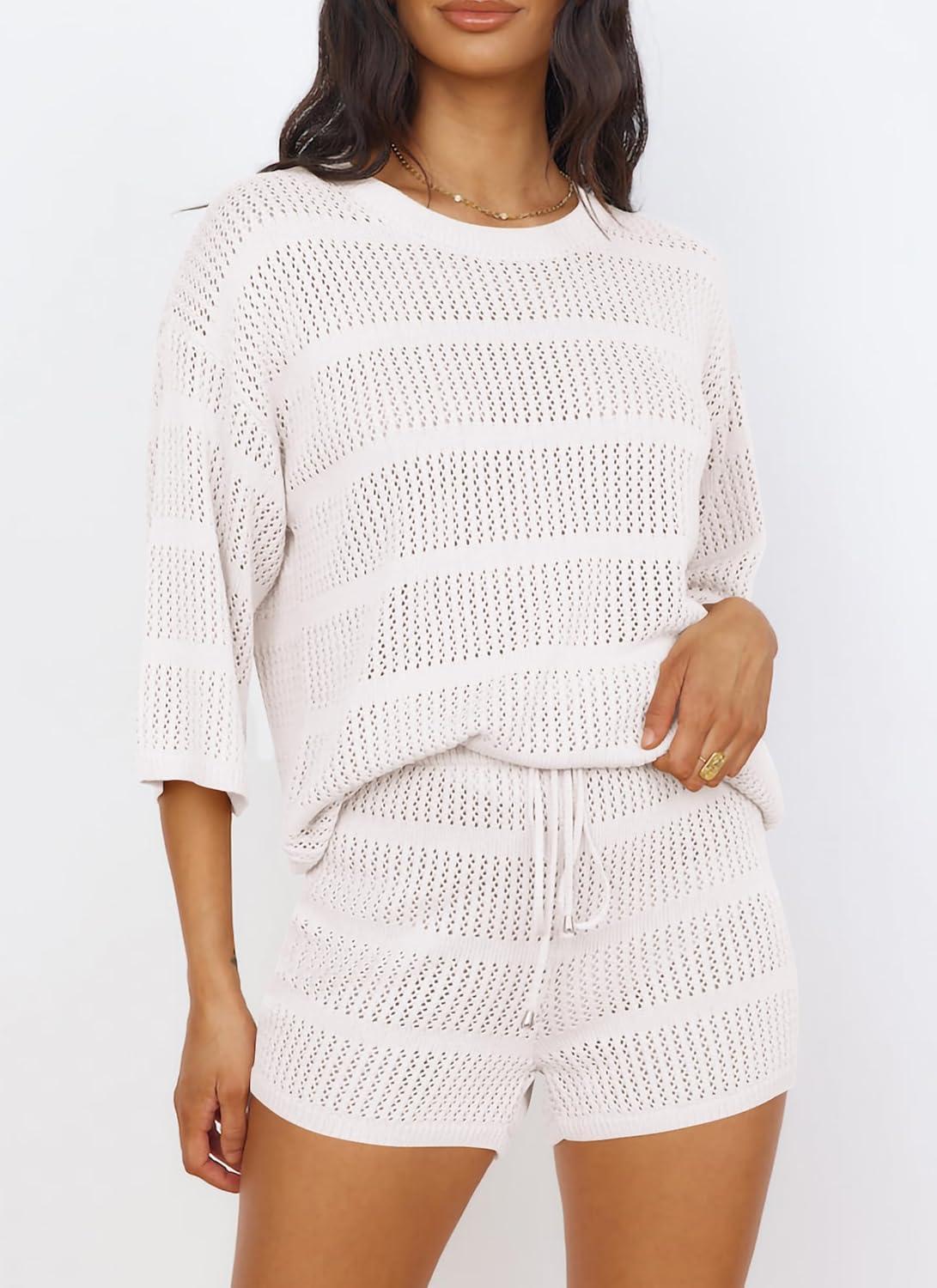 imagePRETTYGARDEN Womens Summer 2 Piece Cover up Knit Swimsuit Short Sleeve Tops Shorts Sets Bathing Suit Beach OutfitsWhite