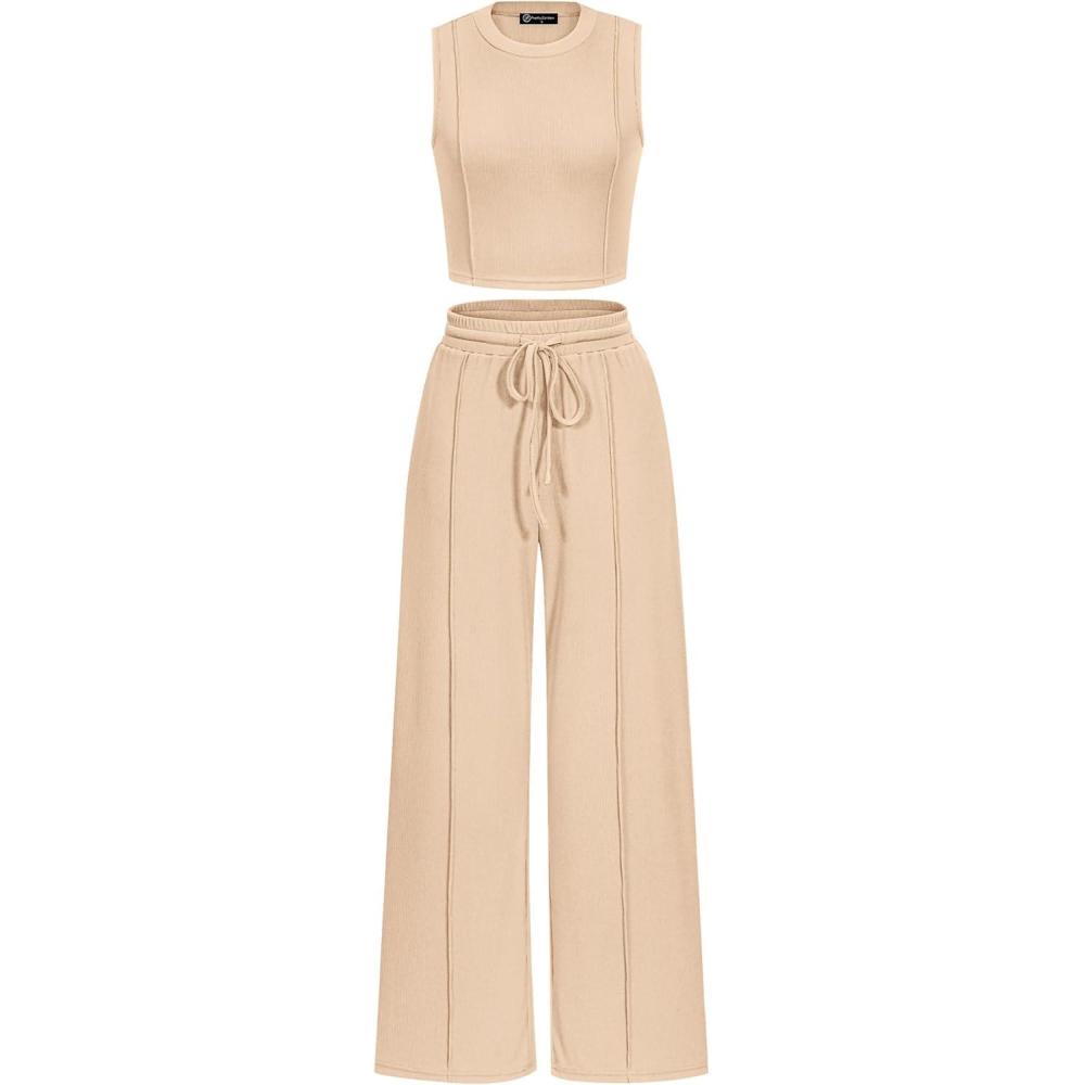 PRETTYGARDEN Women's Summer 2 Piece Loungewear Set Cropped Tank Top Wide Leg Sweatpants Tracksuit Casual Outfits(Apricot)
