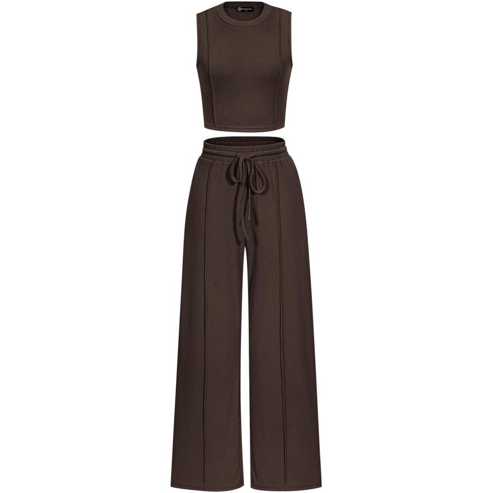 PRETTYGARDEN Women's Summer 2 Piece Loungewear Set Cropped Tank Top Wide Leg Sweatpants Tracksuit Casual Outfits(Coffee)