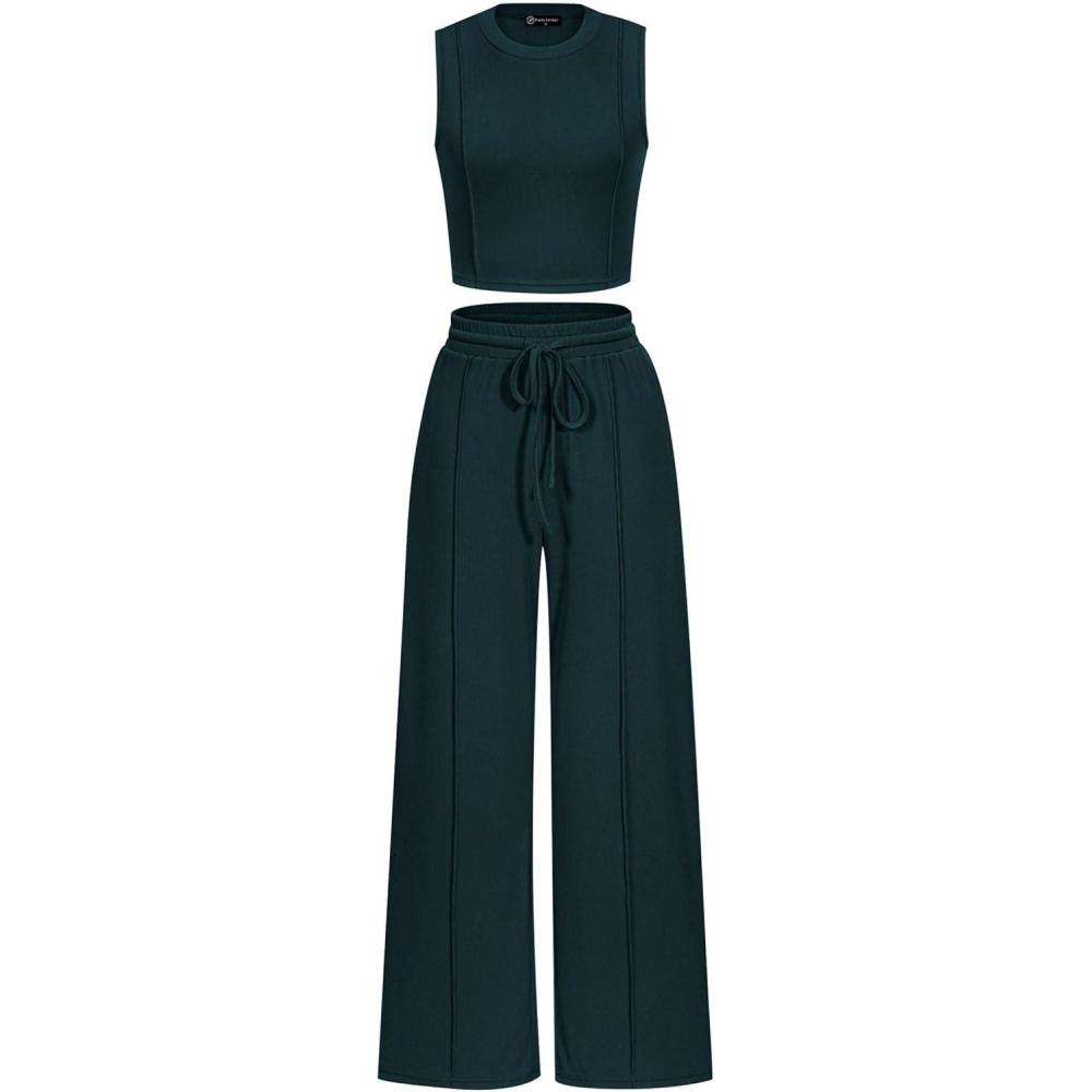 PRETTYGARDEN Women's Summer 2 Piece Loungewear Set Cropped Tank Top Wide Leg Sweatpants Tracksuit Casual Outfits(Dark Green)