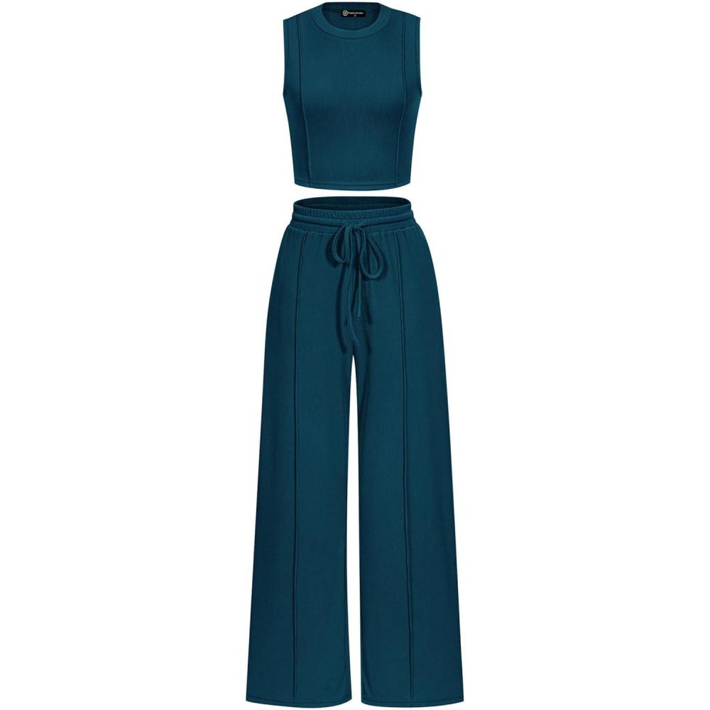 PRETTYGARDEN Women's Summer 2 Piece Loungewear Set Cropped Tank Top Wide Leg Sweatpants Tracksuit Casual Outfits(Lake Blue)