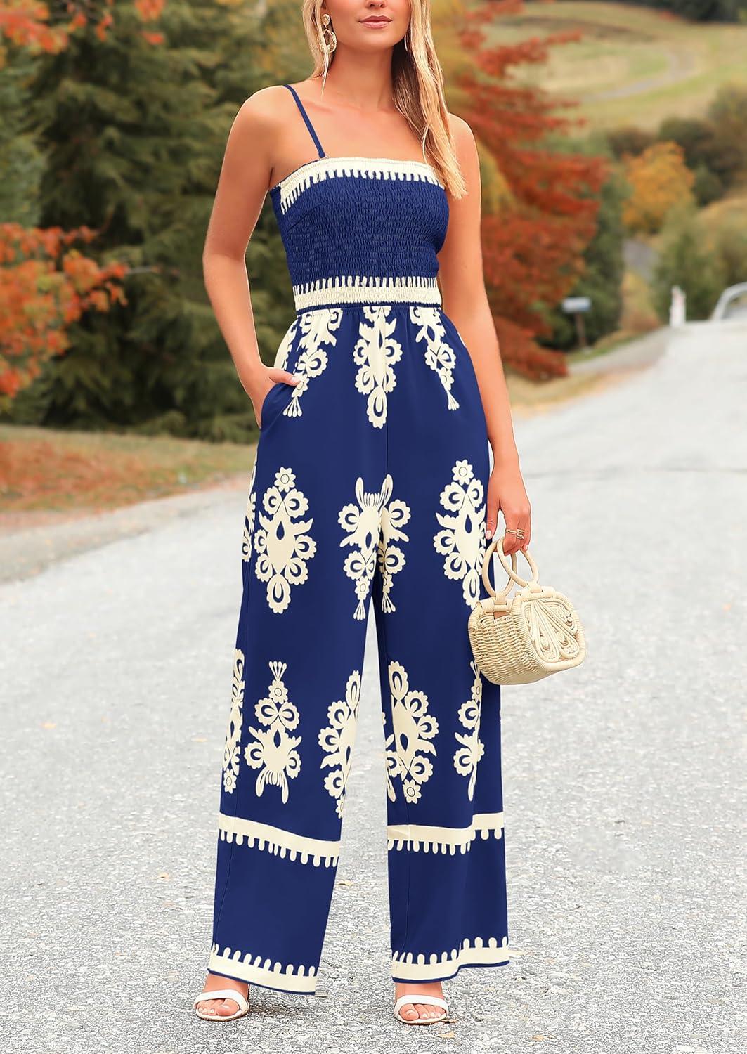 Be the first to review “PRETTYGARDEN Women’s Summer Boho Jumpsuits One Piece Beach Vacation Outfits Spaghetti Strap Wide Leg Pants Rompers(Navy)”