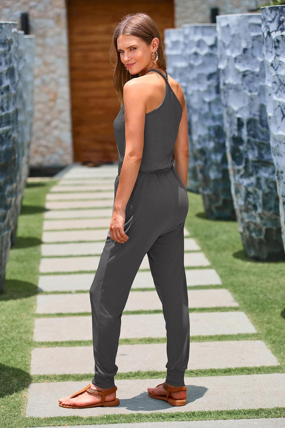 PRETTYGARDEN Womens Summer Casual One Piece Jumpsuits Spaghetti Strap Pants Romper 2025 Spring Vacation Resort Outfits(Dark Grey)