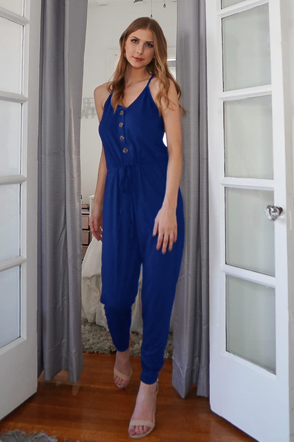 PRETTYGARDEN Womens Summer Casual One Piece Jumpsuits Spaghetti Strap Pants Romper 2025 Spring Vacation Resort Outfits(Solid Blue)