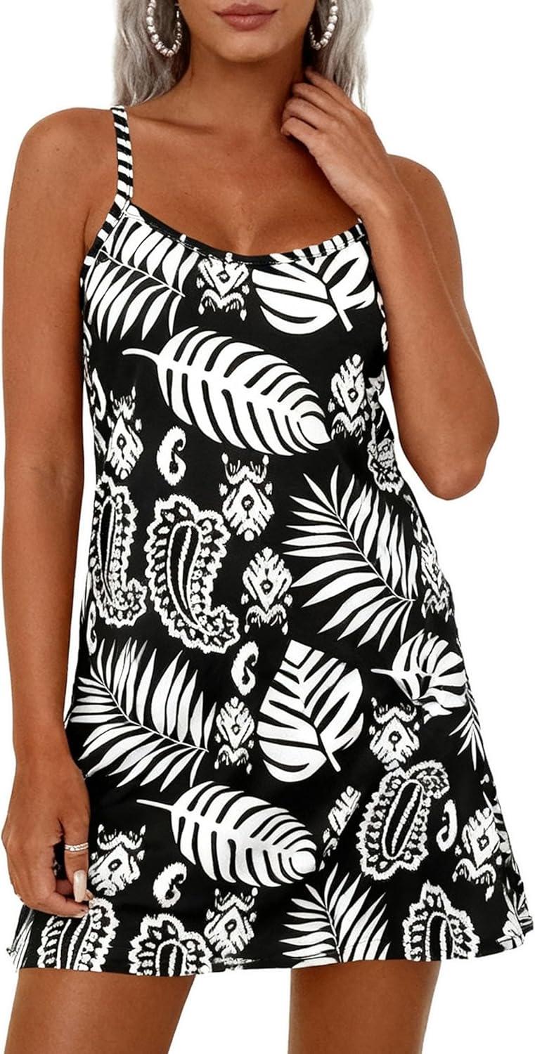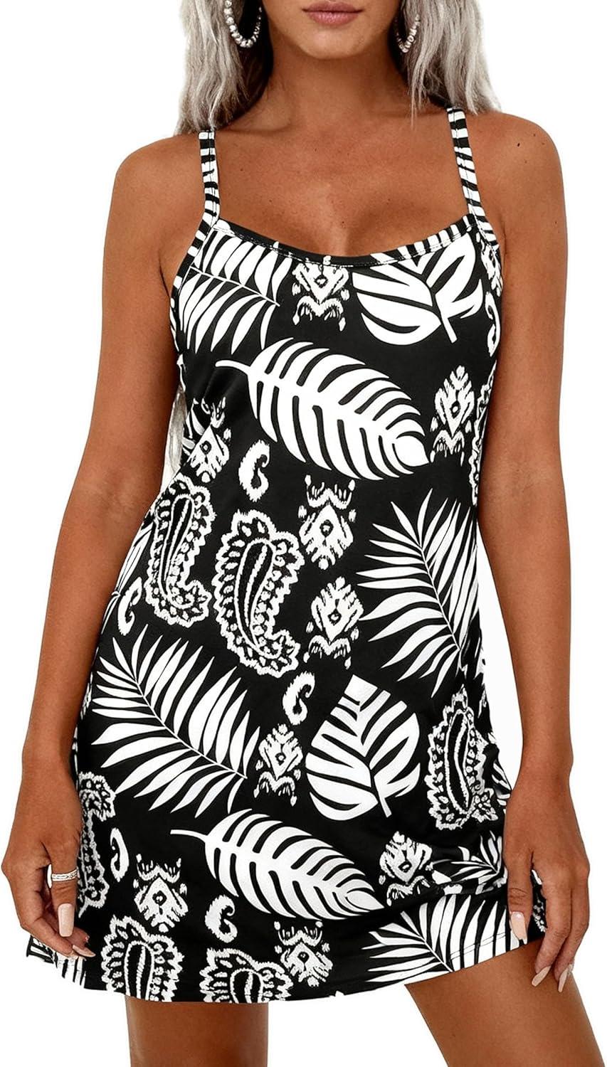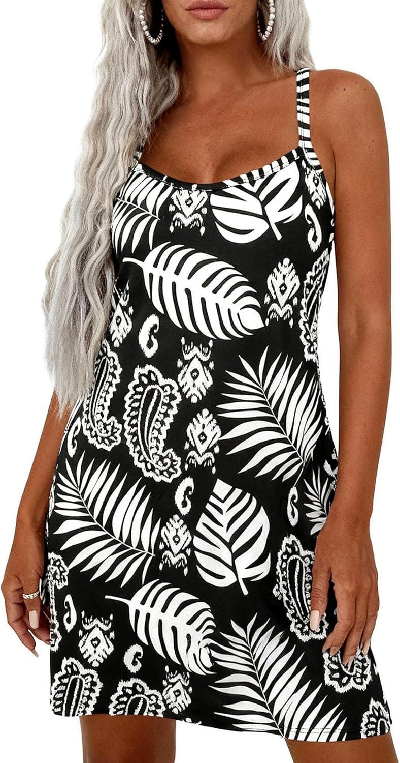 PRETTYGARDEN Women’s Summer Dresses 2026 Casual Print Spaghetti Strap Sleeveless Sundress Beach Vacation Cover Ups(Black)