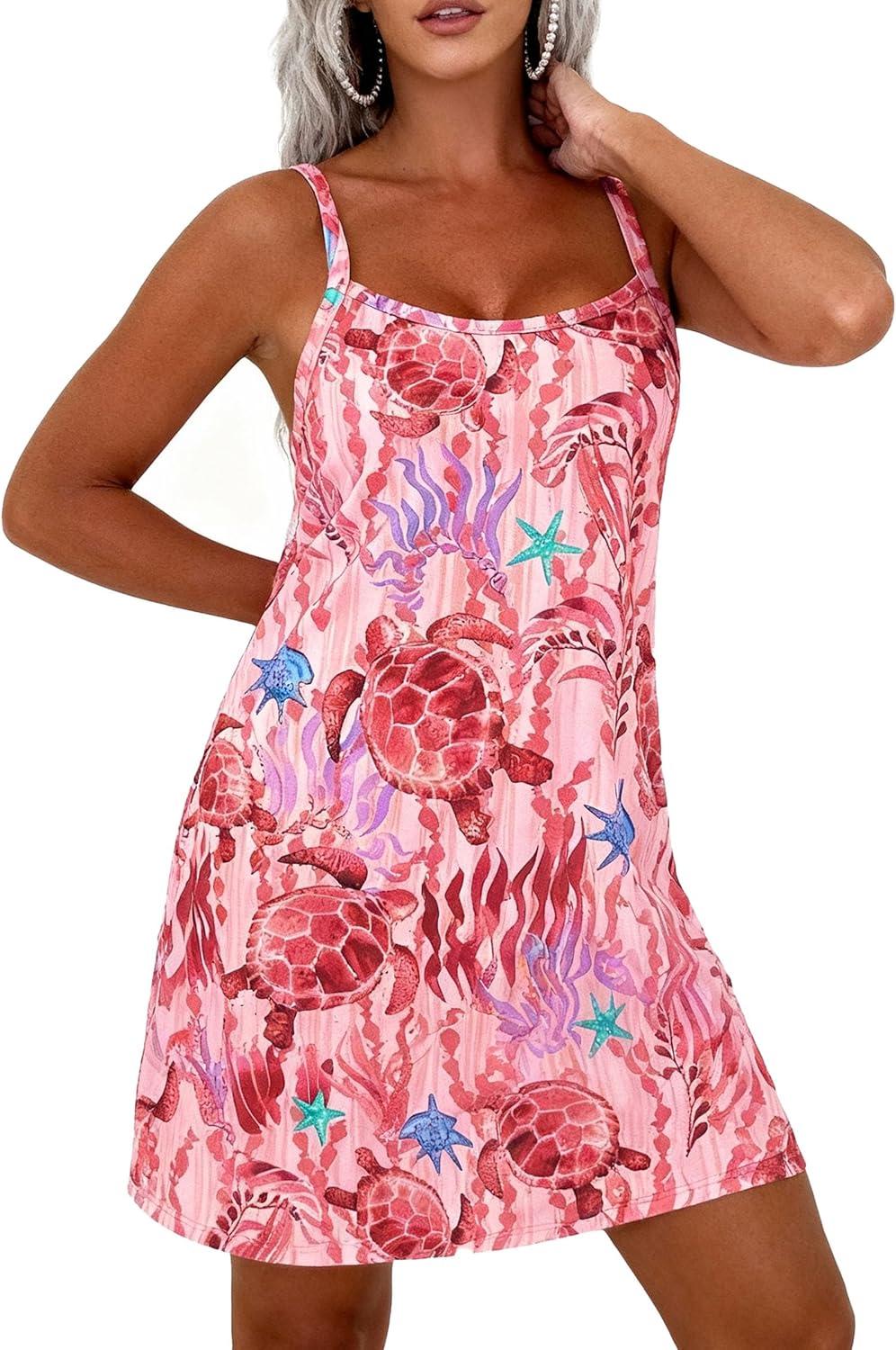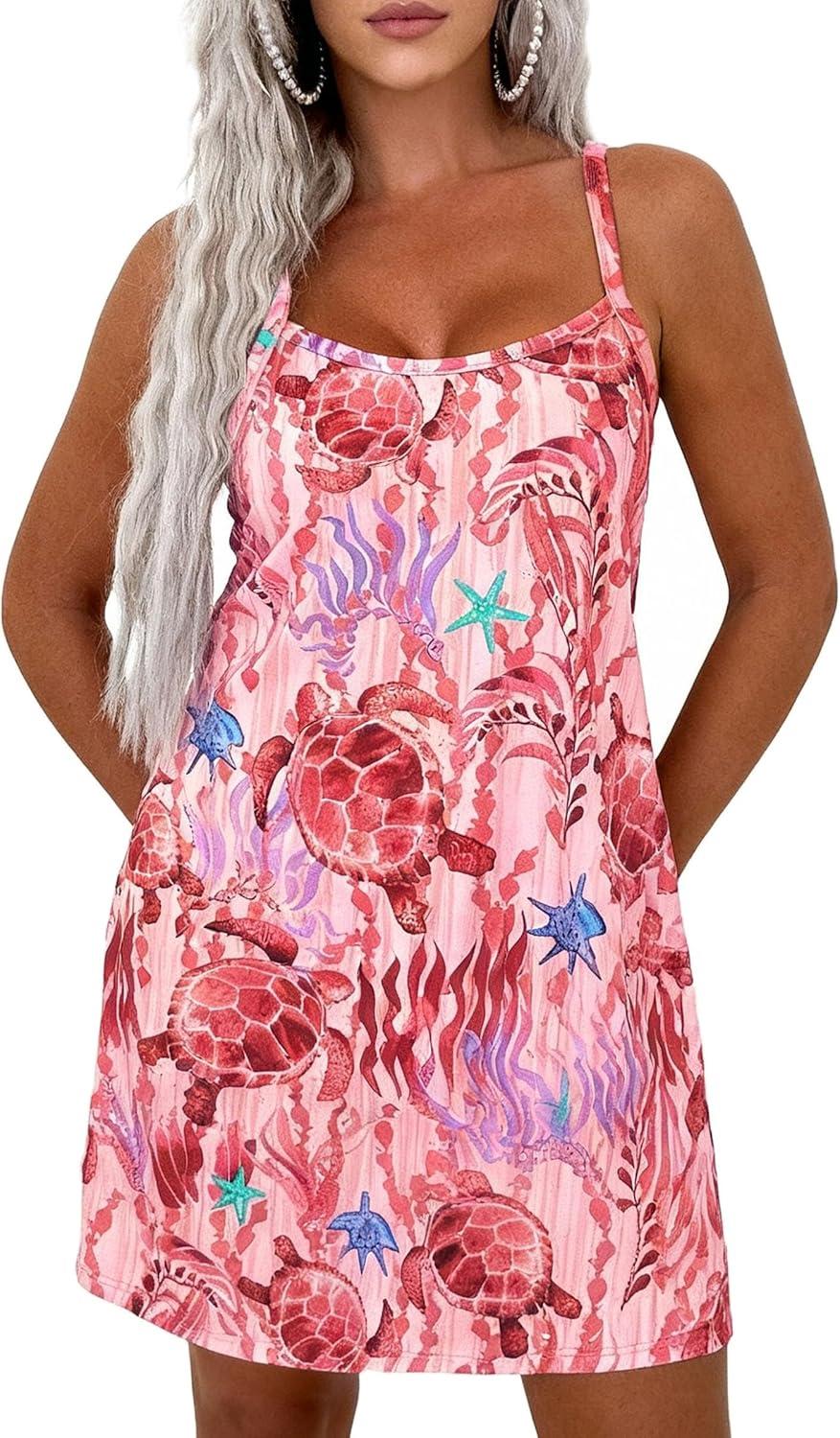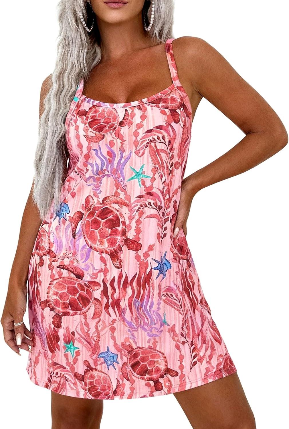 PRETTYGARDEN Women's Summer Dresses 2026 Casual Print Spaghetti Strap Sleeveless Sundress Beach Vacation Cover Ups(Pink)