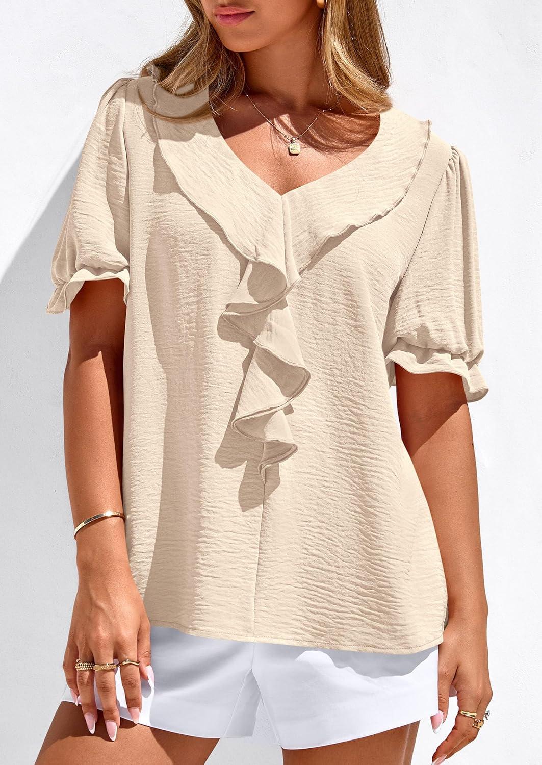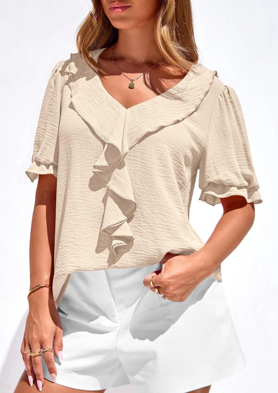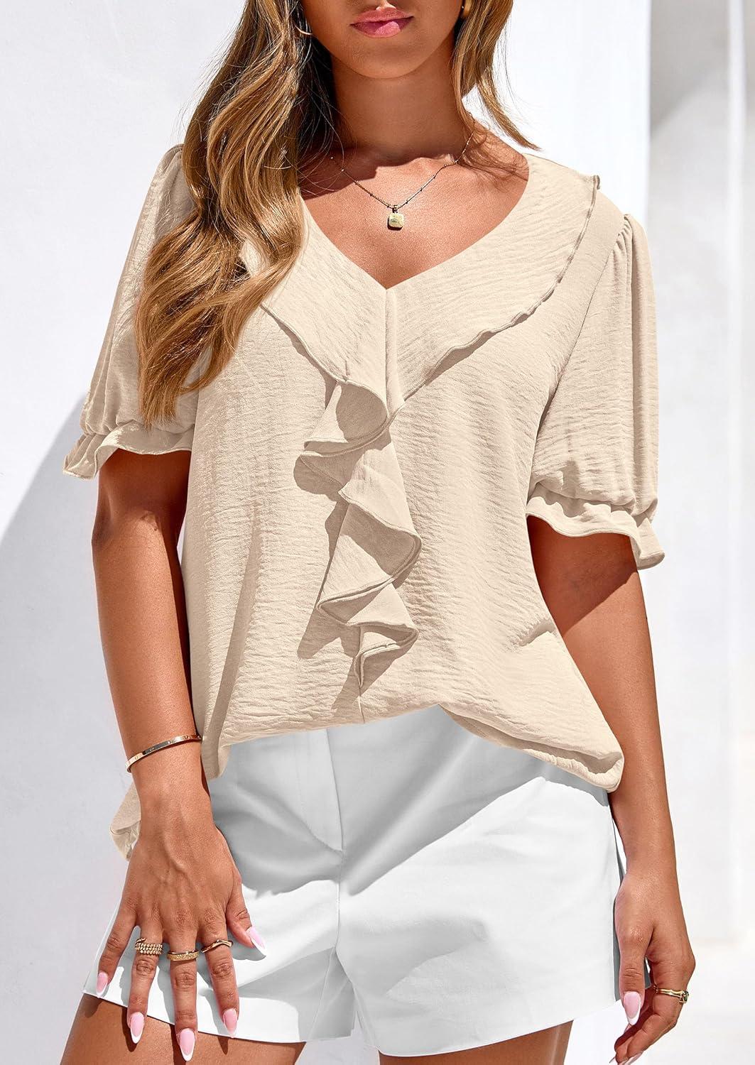 Be the first to review “PRETTYGARDEN Women’s Summer Dressy Casual Blouses 2026 Short Sleeve V Neck Ruffle Business Work Tops Trendy Spring Outfits(Beige)” Cancel reply