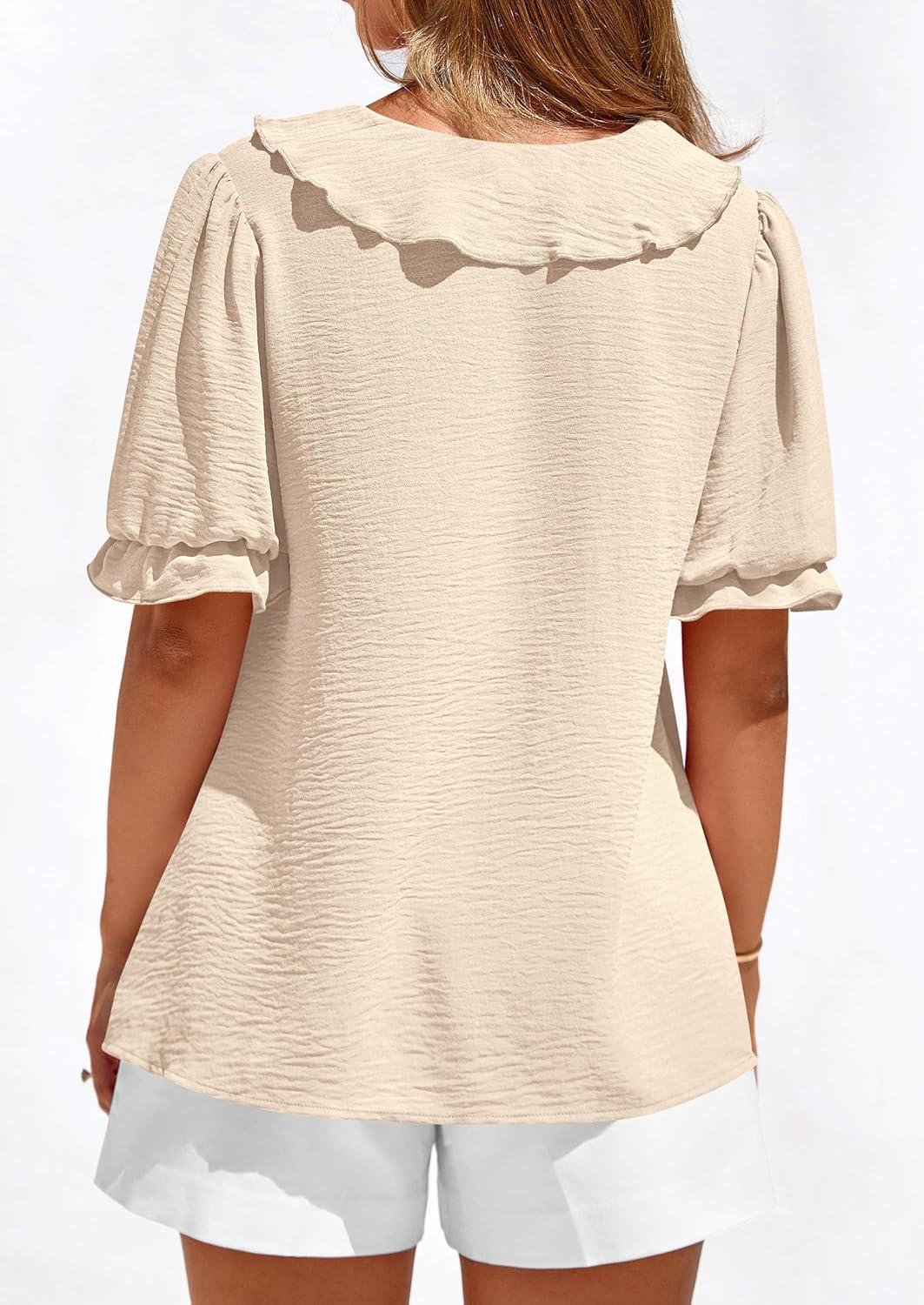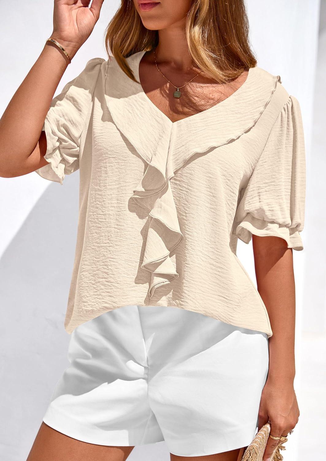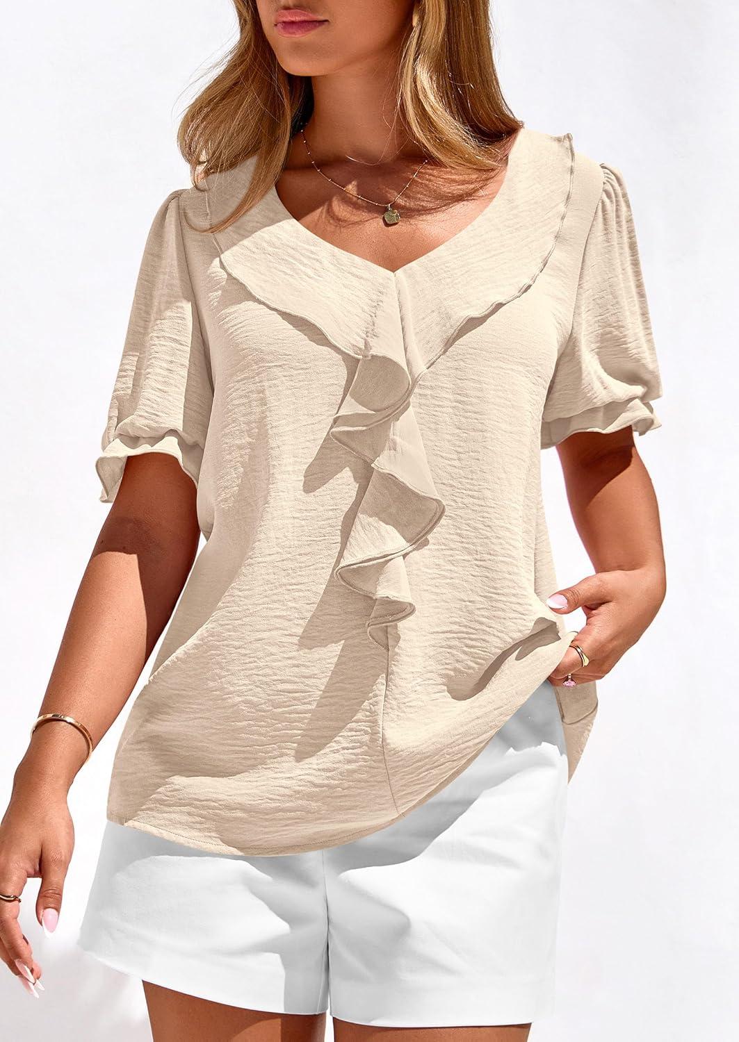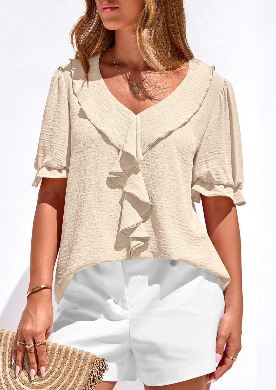 Be the first to review “PRETTYGARDEN Women’s Summer Dressy Casual Blouses 2026 Short Sleeve V Neck Ruffle Business Work Tops Trendy Spring Outfits(Beige)” Cancel reply