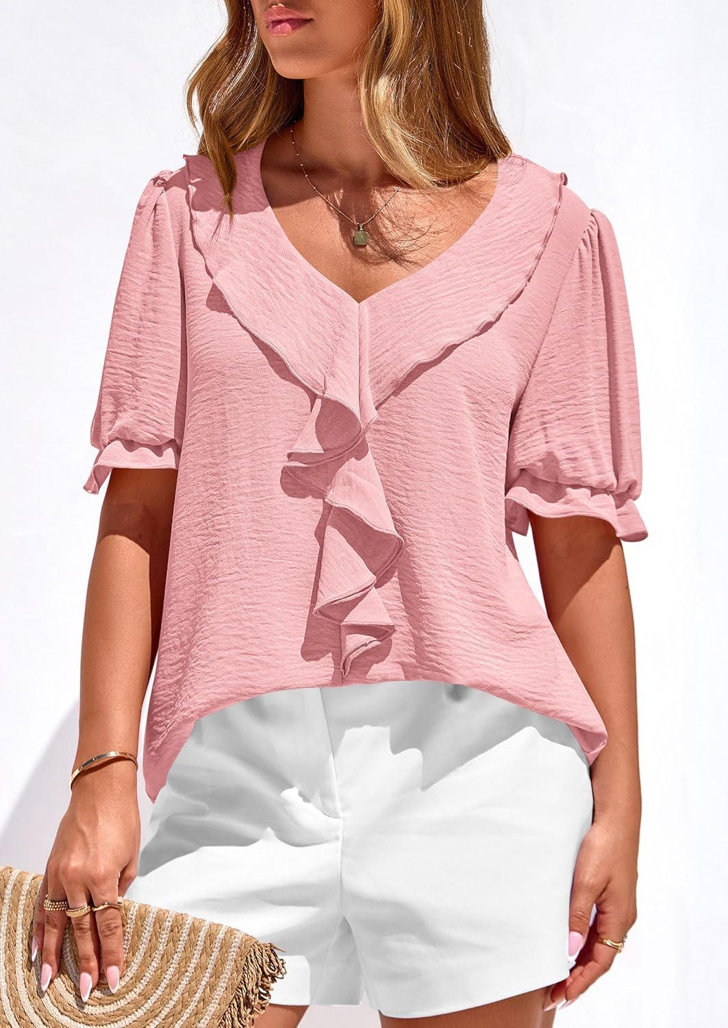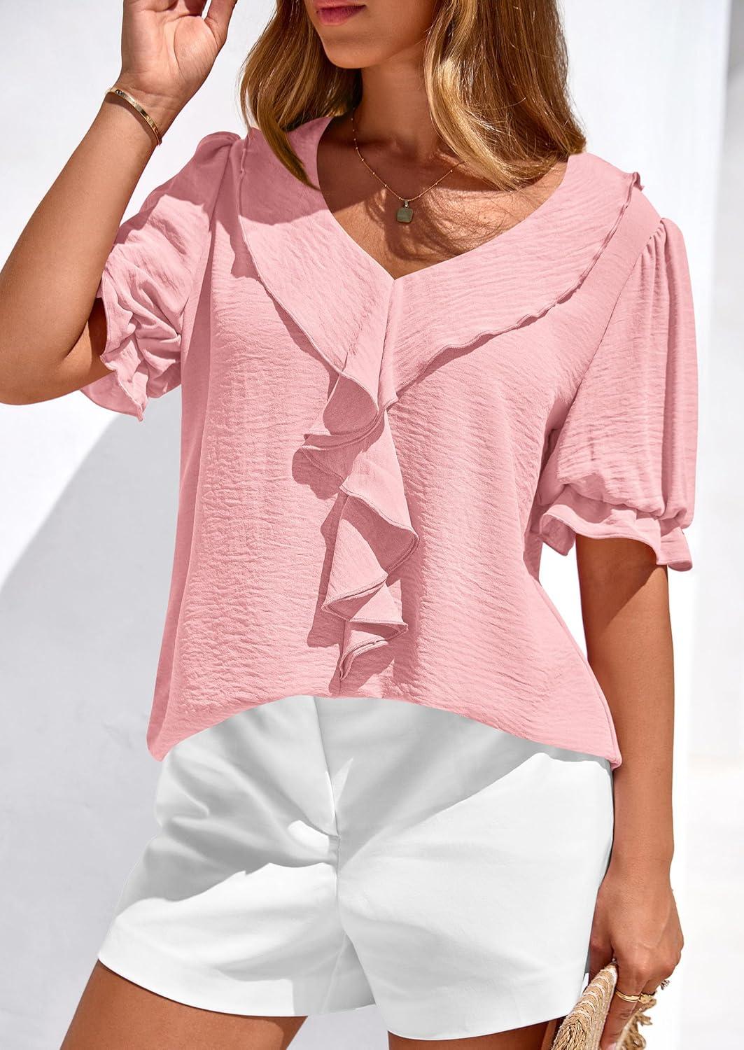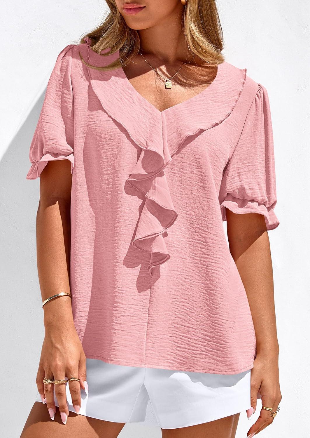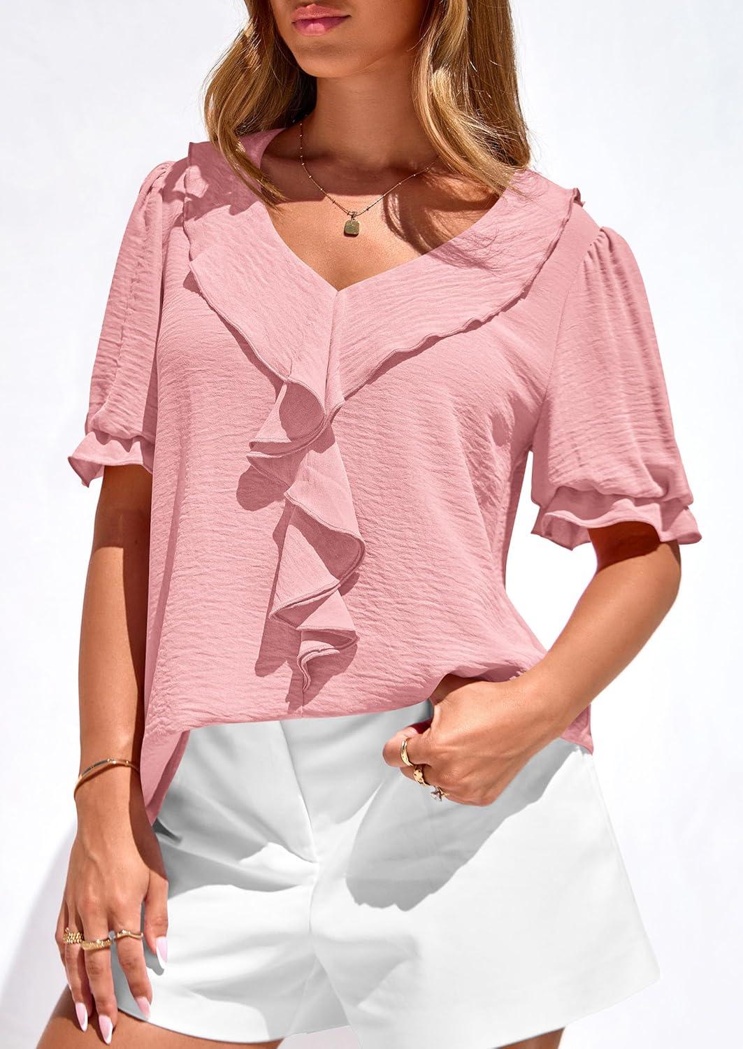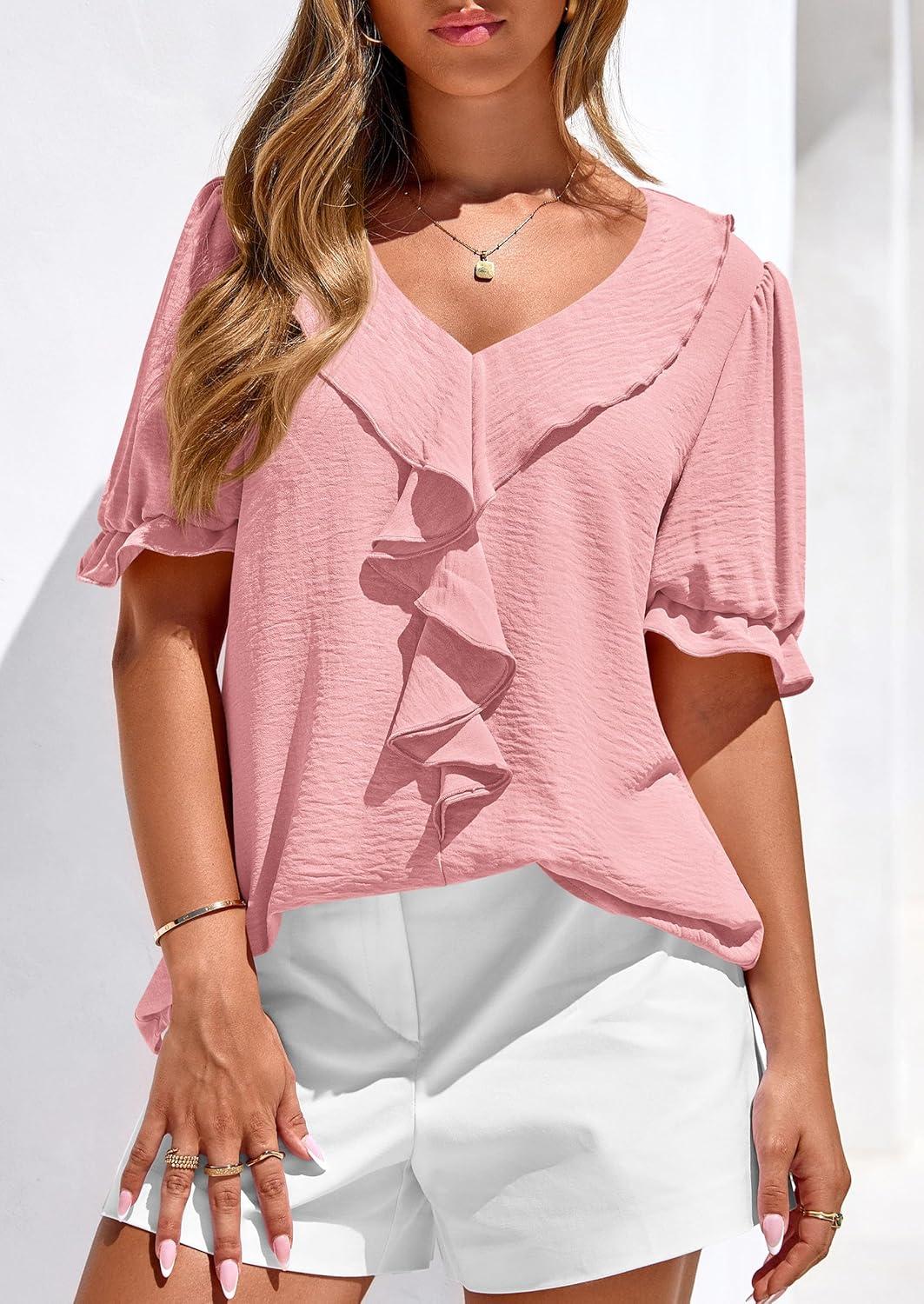 Be the first to review “PRETTYGARDEN Women’s Summer Dressy Casual Blouses 2026 Short Sleeve V Neck Ruffle Business Work Tops Trendy Spring Outfits(Pink)” Cancel reply
