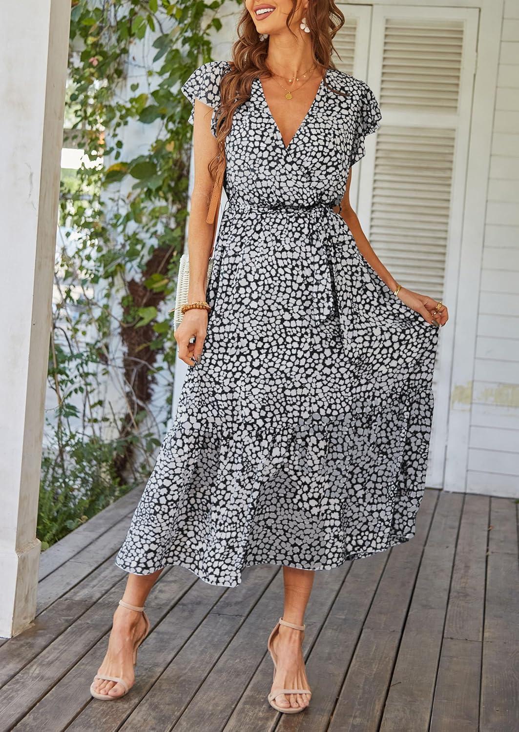 Be the first to review “PRETTYGARDEN Women’s Summer Floral Boho Maxi Dress Wrap Short Sleeve V Neck Ruffle A-Line Flowy Wedding Guest Long Dresses(Black)”