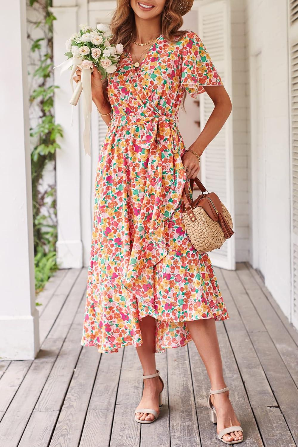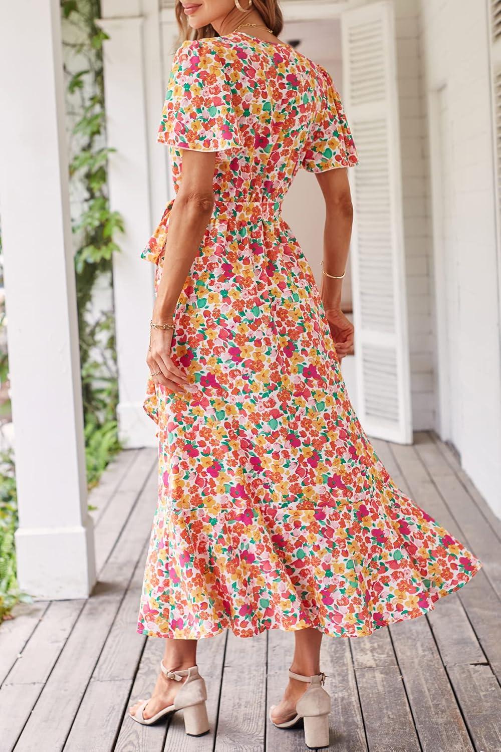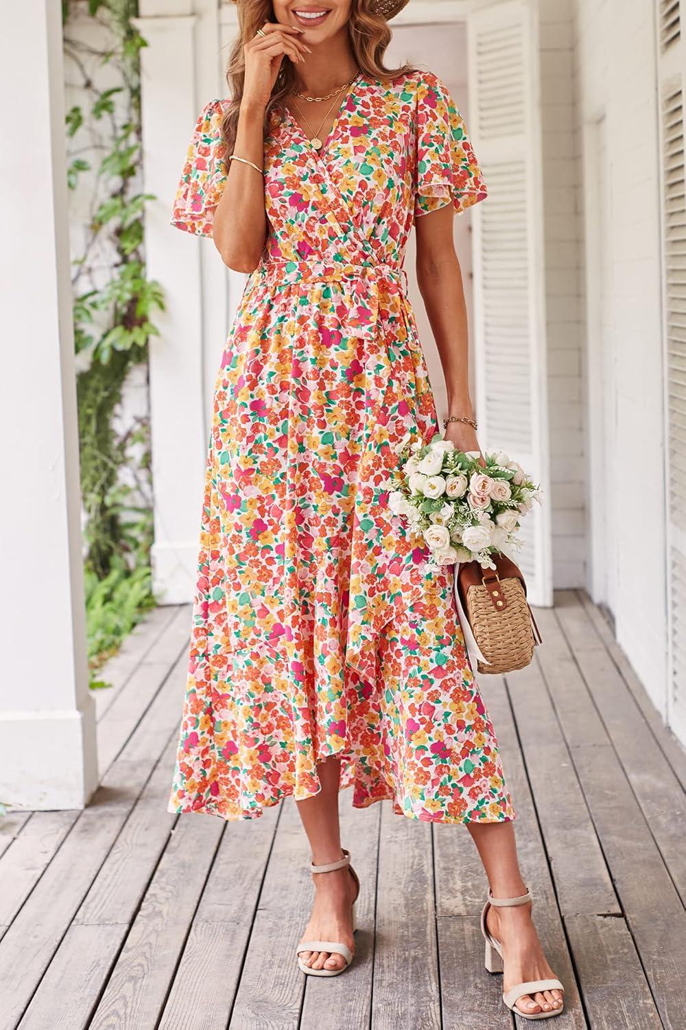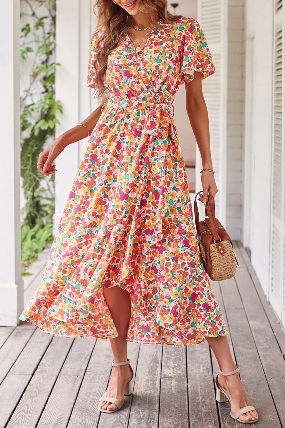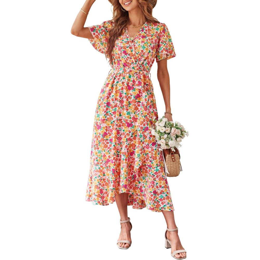 Be the first to review “PRETTYGARDEN Women’s Summer Floral Boho Maxi Dress Wrap Short Sleeve V Neck Ruffle A-Line Flowy Wedding Guest Long Dresses(Print White Pink)”