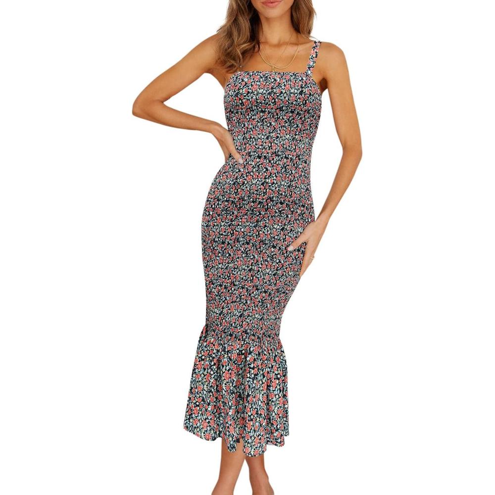 Be the first to review “PRETTYGARDEN Women’s Summer Floral Midi Tank Dress Sleeveless Strappy Ruffle Hem Smocked Bodycon Dresses(Black Red Floral)”