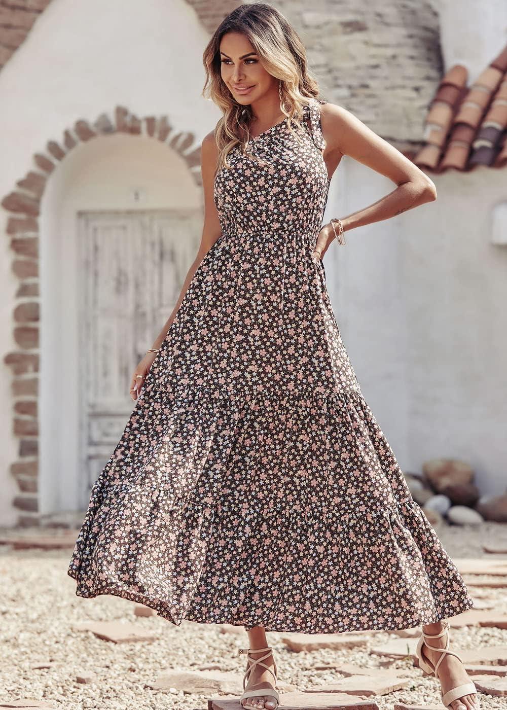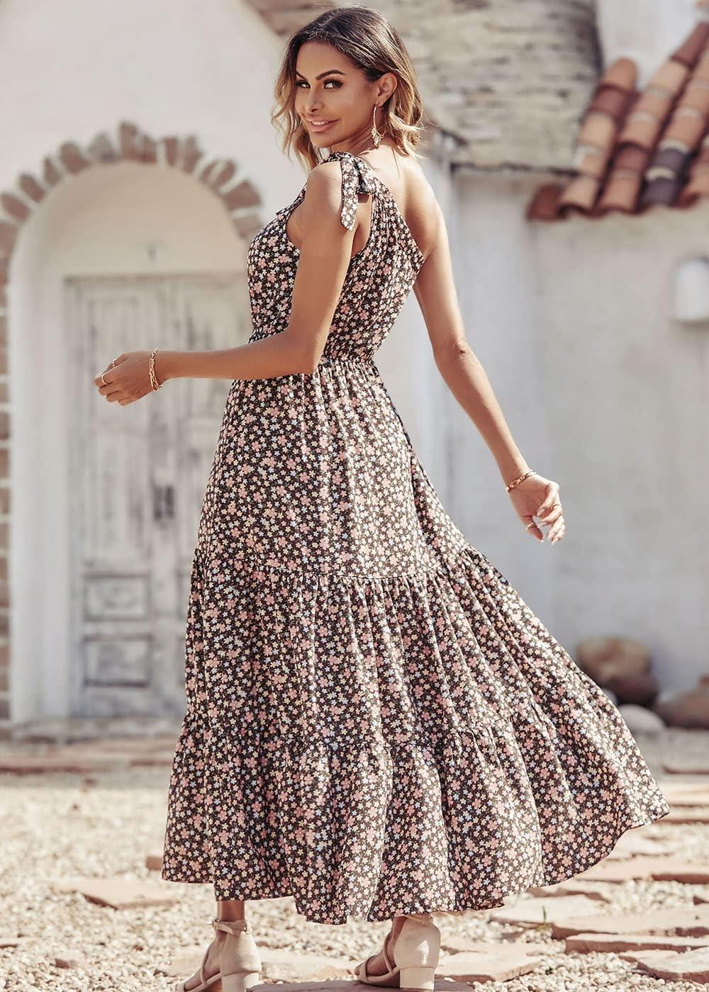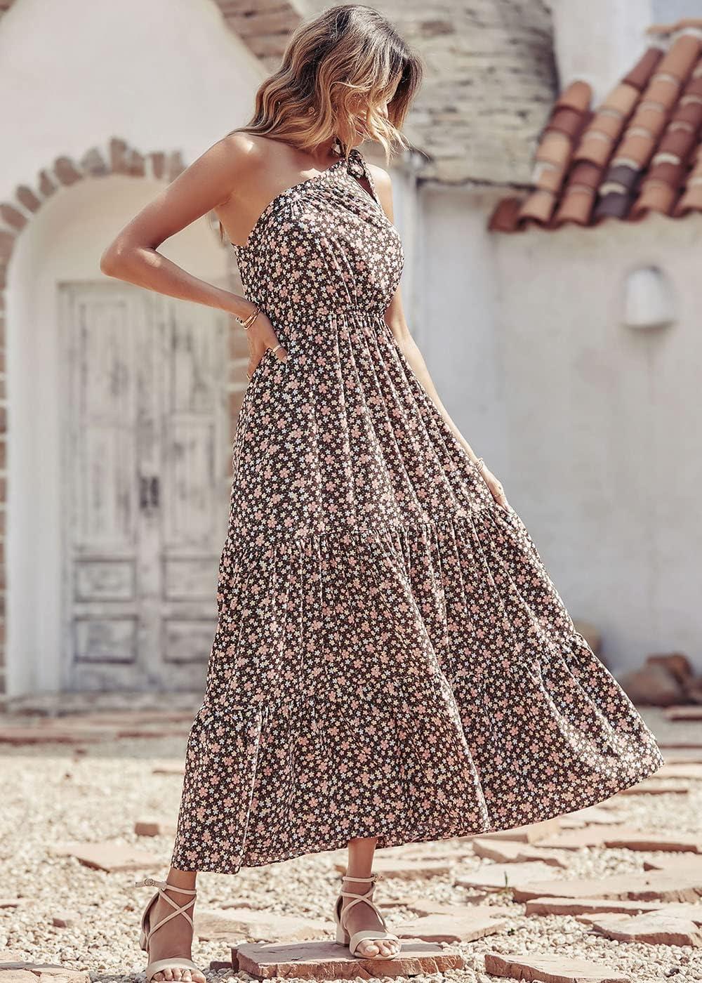Be the first to review “PRETTYGARDEN Women’s Summer Floral One Shoulder Maxi Dress Knot Ruffle Boho Beach Vacation Wedding Guest Long Dresses(Coffee Pink)”