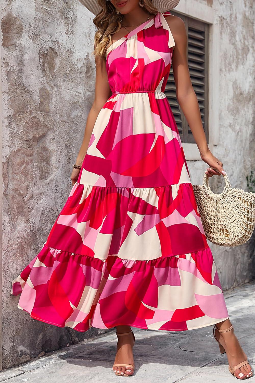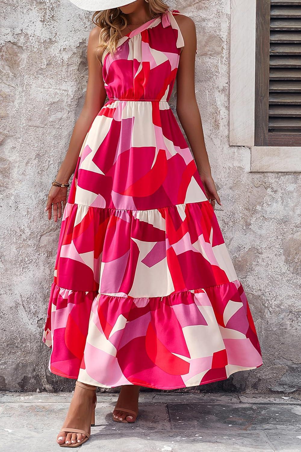 Be the first to review “PRETTYGARDEN Women’s Summer Floral One Shoulder Maxi Dress Knot Ruffle Boho Beach Vacation Wedding Guest Long Dresses(Red White Block)”