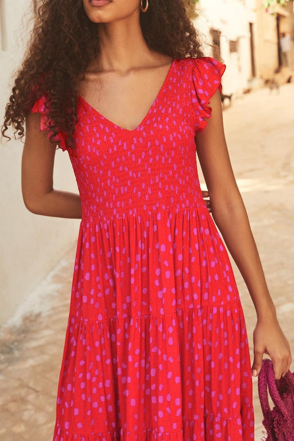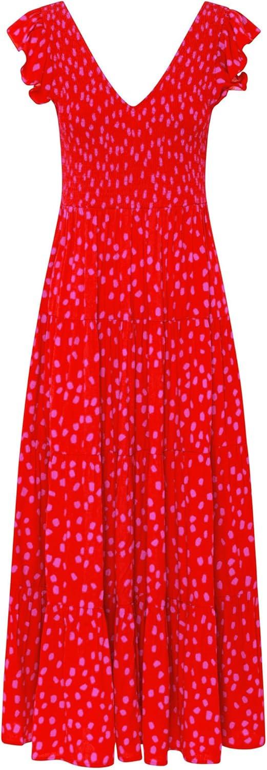 Be the first to review “PRETTYGARDEN Women’s Summer Flowy Maxi Dress Casual Cap Sleeve V Neck Smocked Beach Sundress(Print Red)”