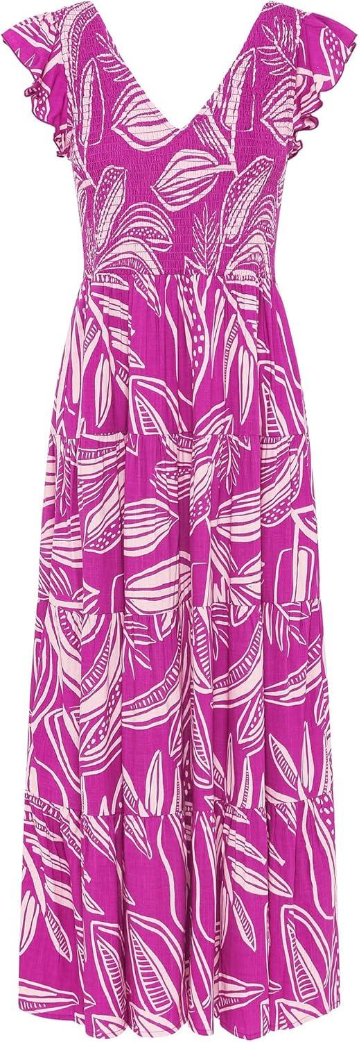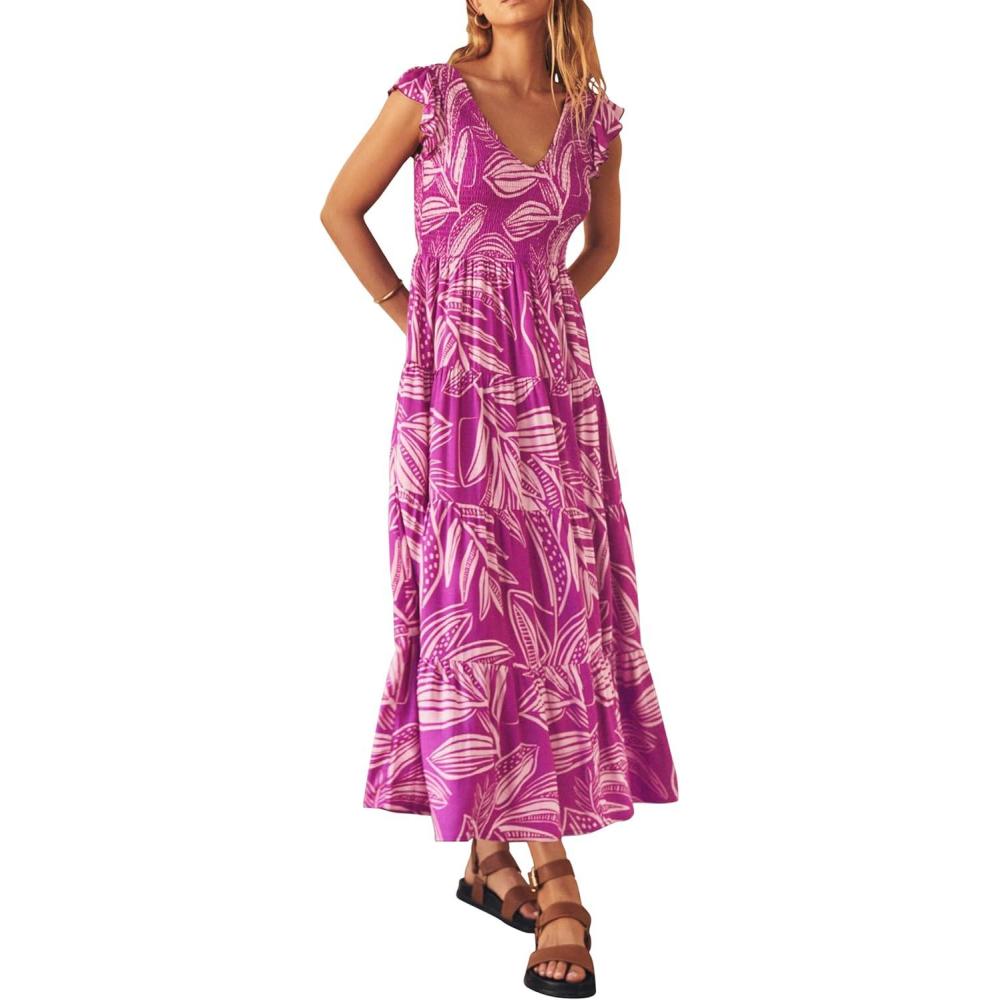 imagePRETTYGARDEN Womens Summer Flowy Maxi Dress Casual Cap Sleeve V Neck Smocked Beach SundressPrint Rose Purple
