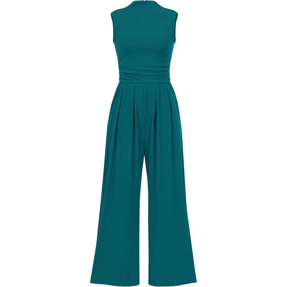 PRETTYGARDEN Womens Summer Jumpsuits Dressy Casual One Piece Outfits Sleeveless Mock Neck Wide Leg Pants Rompers with Pockets(Blue Green)