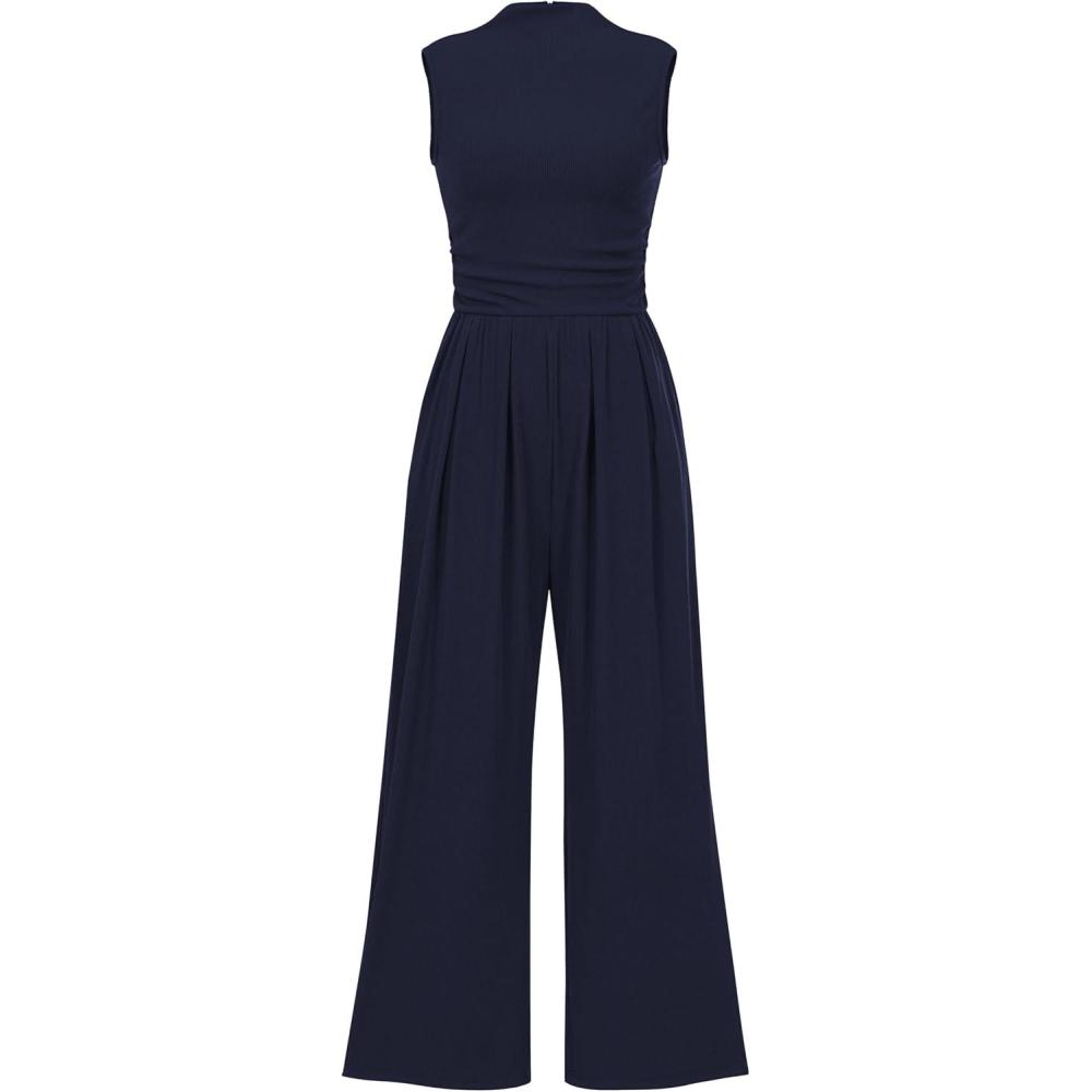 PRETTYGARDEN Womens Summer Jumpsuits Dressy Casual One Piece Outfits Sleeveless Mock Neck Wide Leg Pants Rompers with Pockets(Navy)