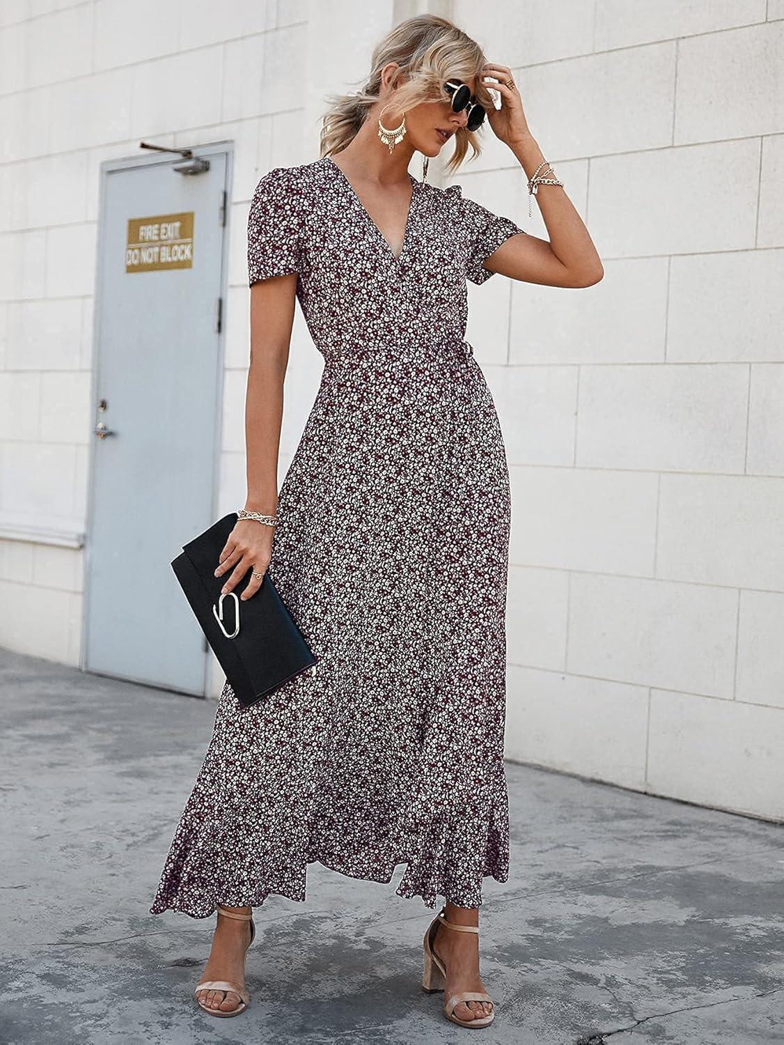 Be the first to review “PRETTYGARDEN Women’s Summer Maxi Dress Casual Wrap Floral Boho Short Sleeve V Neck Split Ruffle Beach Long Dresses(Coffee)”