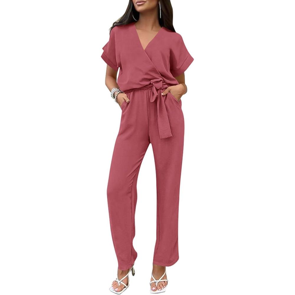Be the first to review “PRETTYGARDEN Women’s Summer One Piece Jumpsuits Belted Short Sleeve Wrap V Neck Fashion Dressy Casual Wide Leg Pants Romper(Dark Pink)”