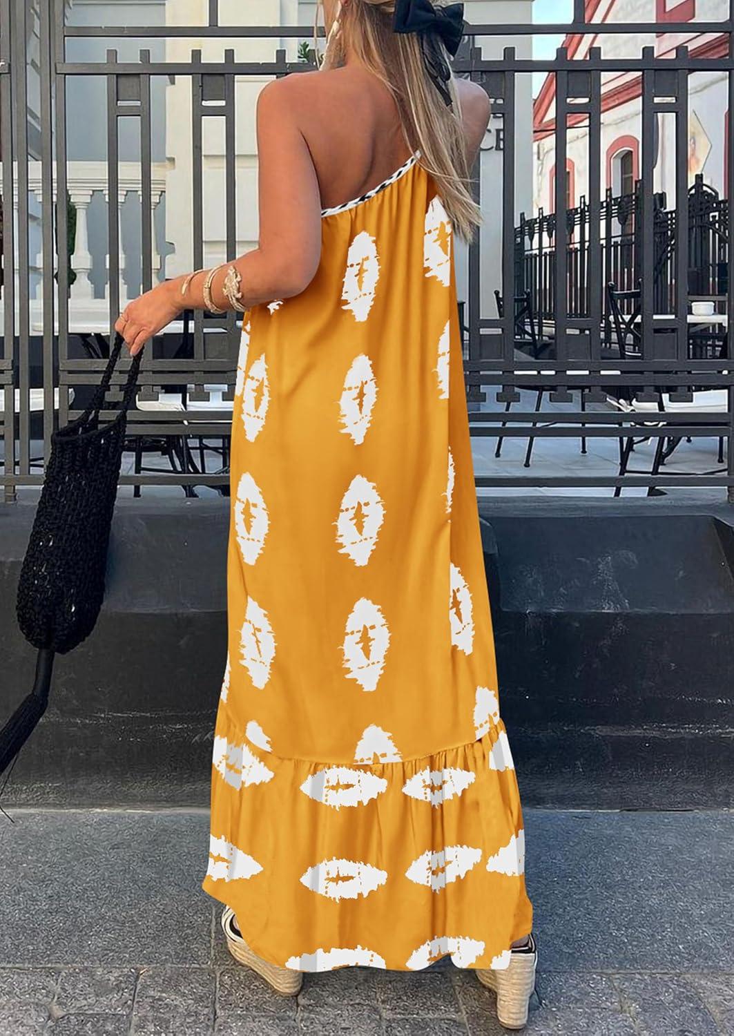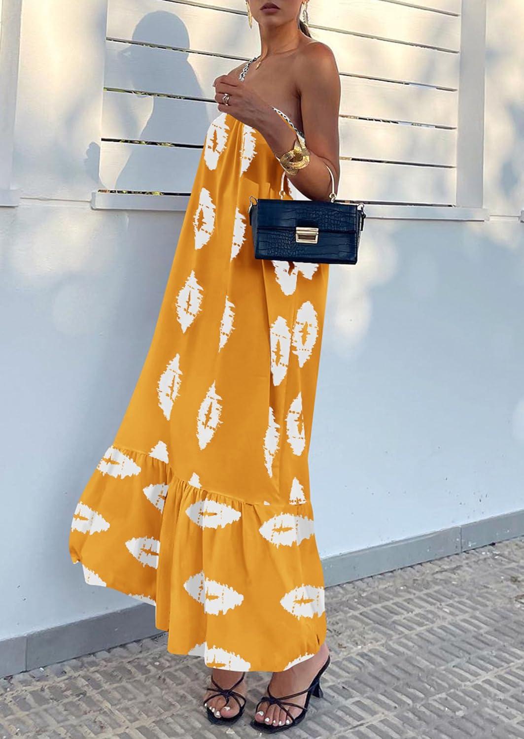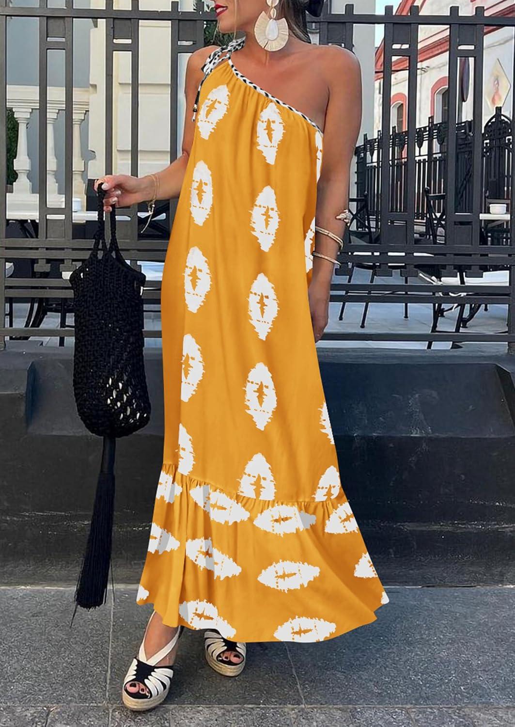 PRETTYGARDEN Women's Summer One Shoulder Maxi Dresses Printed Flowy Boho Beach Vacation Long Sundress(Turmeric White Floral)