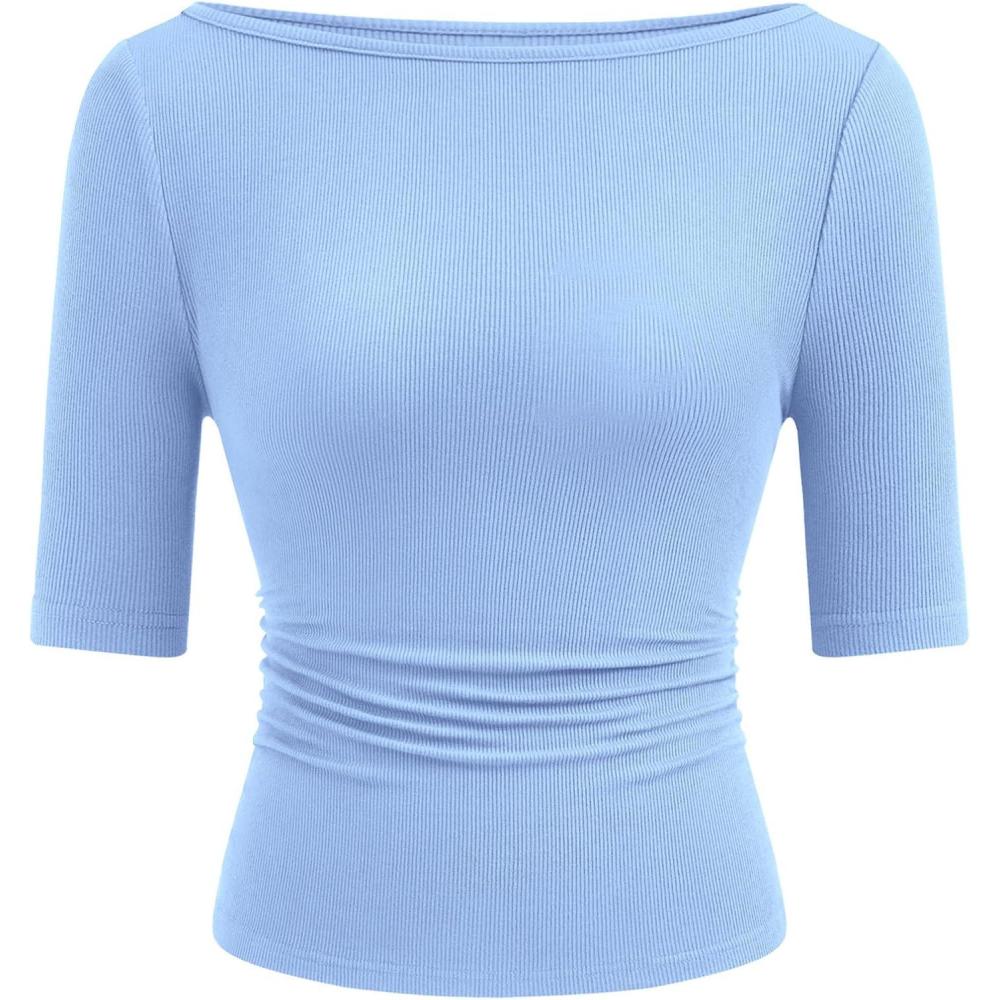 Be the first to review “PRETTYGARDEN Womens Summer Short Sleeve Tops Boat Neck Ribbed Knit Slim Fit T Shirt Casual Basic Top 2026 Spring Clothes(Light Blue)” Cancel reply