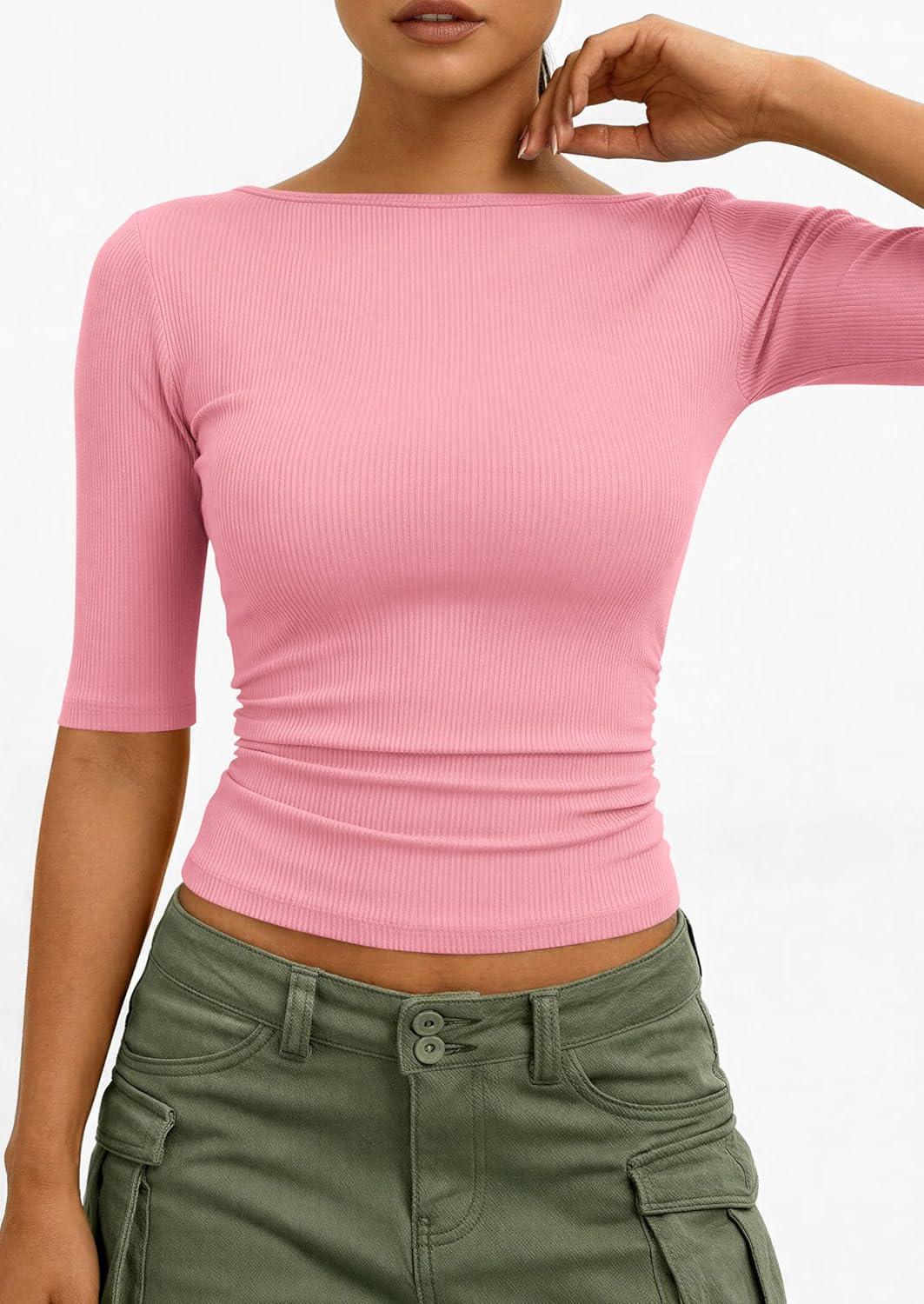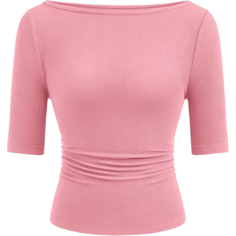 Be the first to review “PRETTYGARDEN Womens Summer Short Sleeve Tops Boat Neck Ribbed Knit Slim Fit T Shirt Casual Basic Top 2026 Spring Clothes(Pink)” Cancel reply