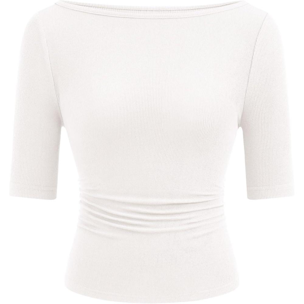 Be the first to review “PRETTYGARDEN Womens Summer Short Sleeve Tops Boat Neck Ribbed Knit Slim Fit T Shirt Casual Basic Top 2026 Spring Clothes(White)” Cancel reply