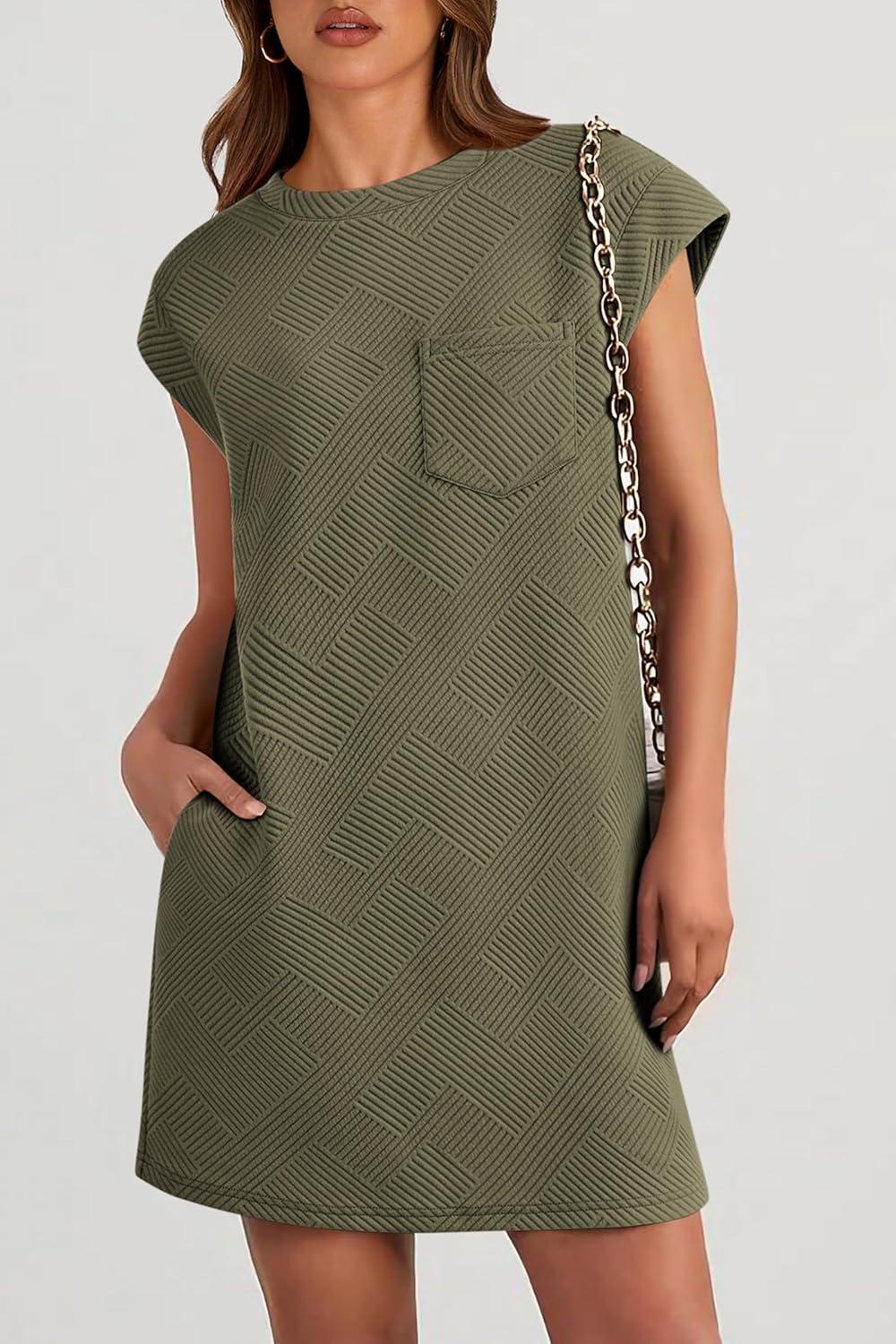 PRETTYGARDEN Women's Summer Short T Shirt Dress Cap Sleeve Crew Neck Casual Loose Basic Mini Dresses(Army Green)