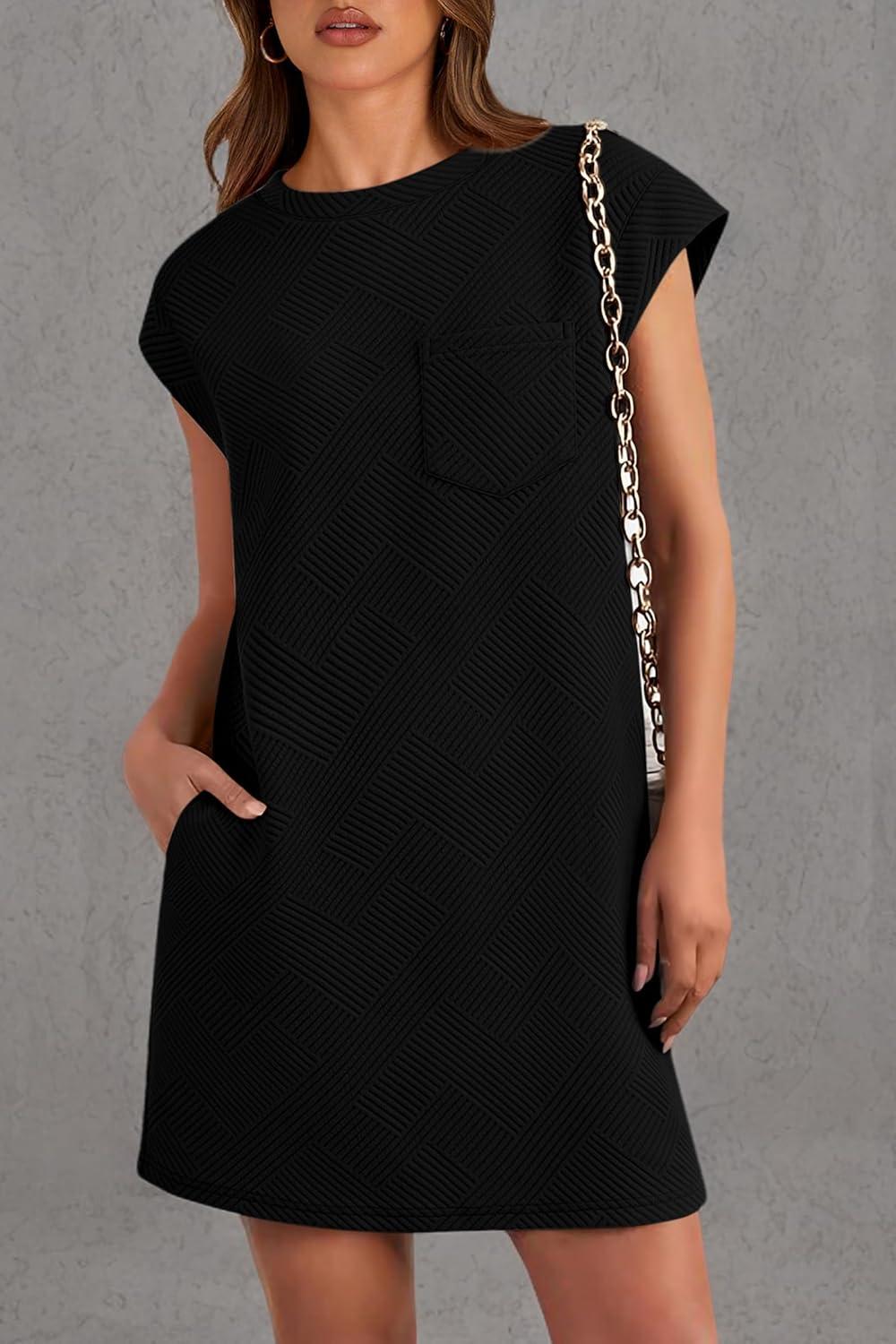 PRETTYGARDEN Women's Summer Short T Shirt Dress Cap Sleeve Crew Neck Casual Loose Basic Mini Dresses(Black)