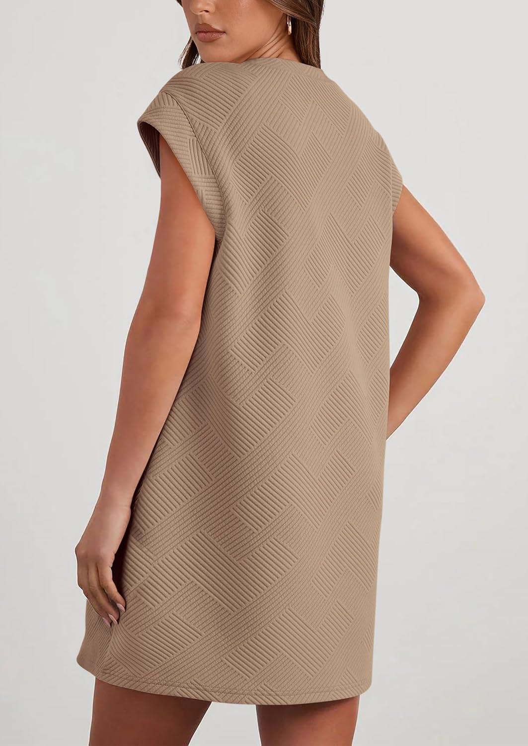 PRETTYGARDEN Women’s Summer Short T Shirt Dress Cap Sleeve Crew Neck Casual Loose Basic Mini Dresses(Coffee)