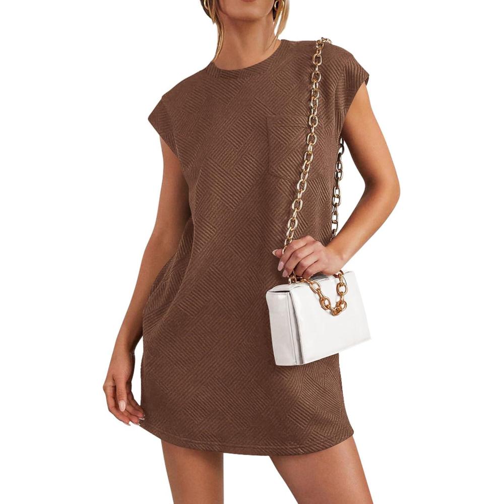 imagePRETTYGARDEN Womens Summer Short T Shirt Dress Cap Sleeve Crew Neck Casual Loose Basic Mini DressesCoffee