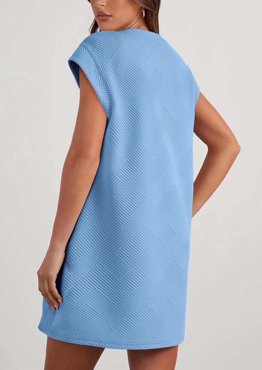 PRETTYGARDEN Women’s Summer Short T Shirt Dress Cap Sleeve Crew Neck Casual Loose Basic Mini Dresses(Light Blue)