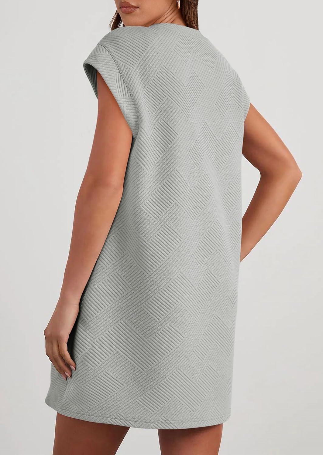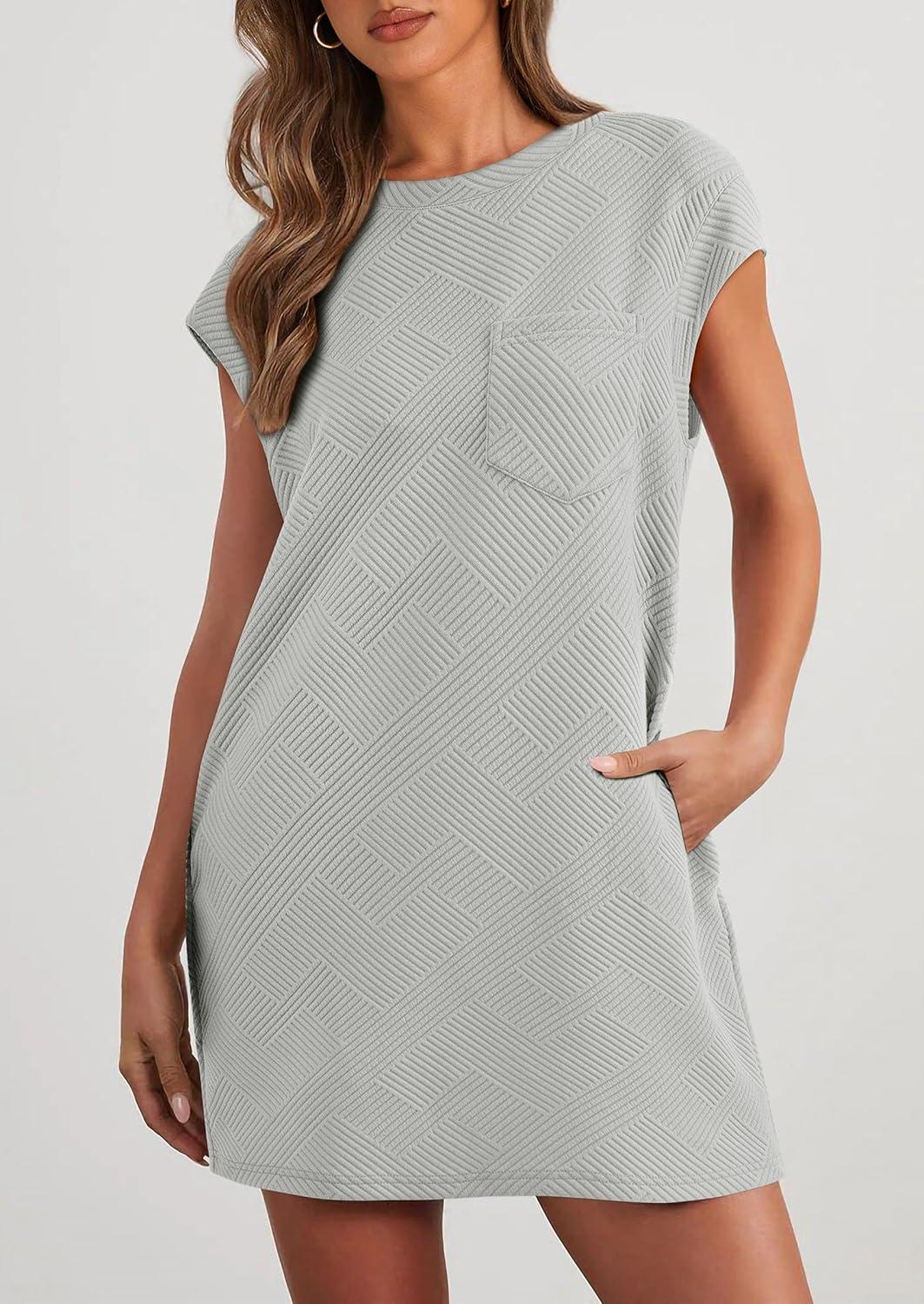 PRETTYGARDEN Women's Summer Short T Shirt Dress Cap Sleeve Crew Neck Casual Loose Basic Mini Dresses(Light Grey)