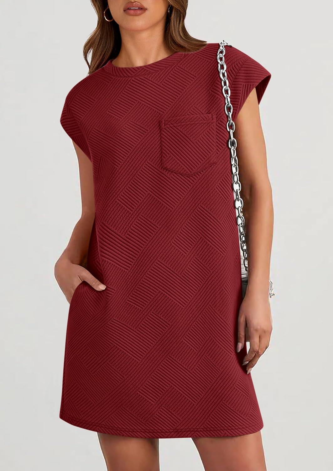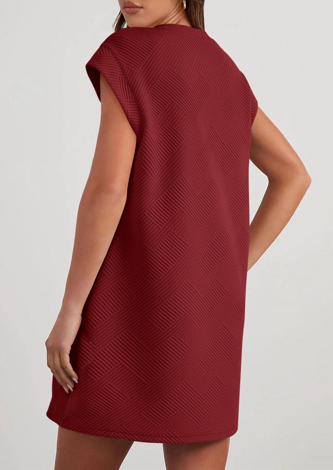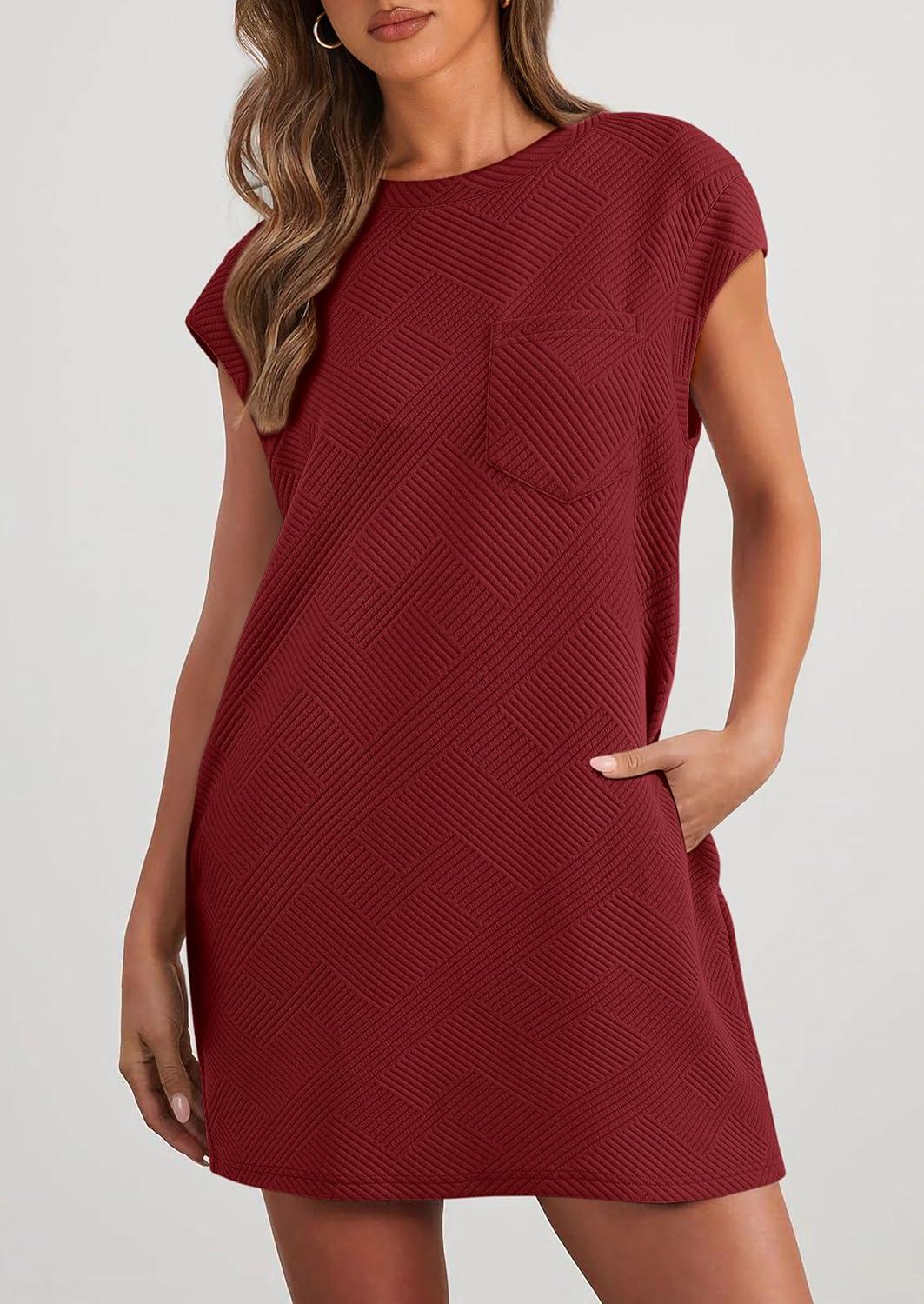 PRETTYGARDEN Women's Summer Short T Shirt Dress Cap Sleeve Crew Neck Casual Loose Basic Mini Dresses(Wine Red)