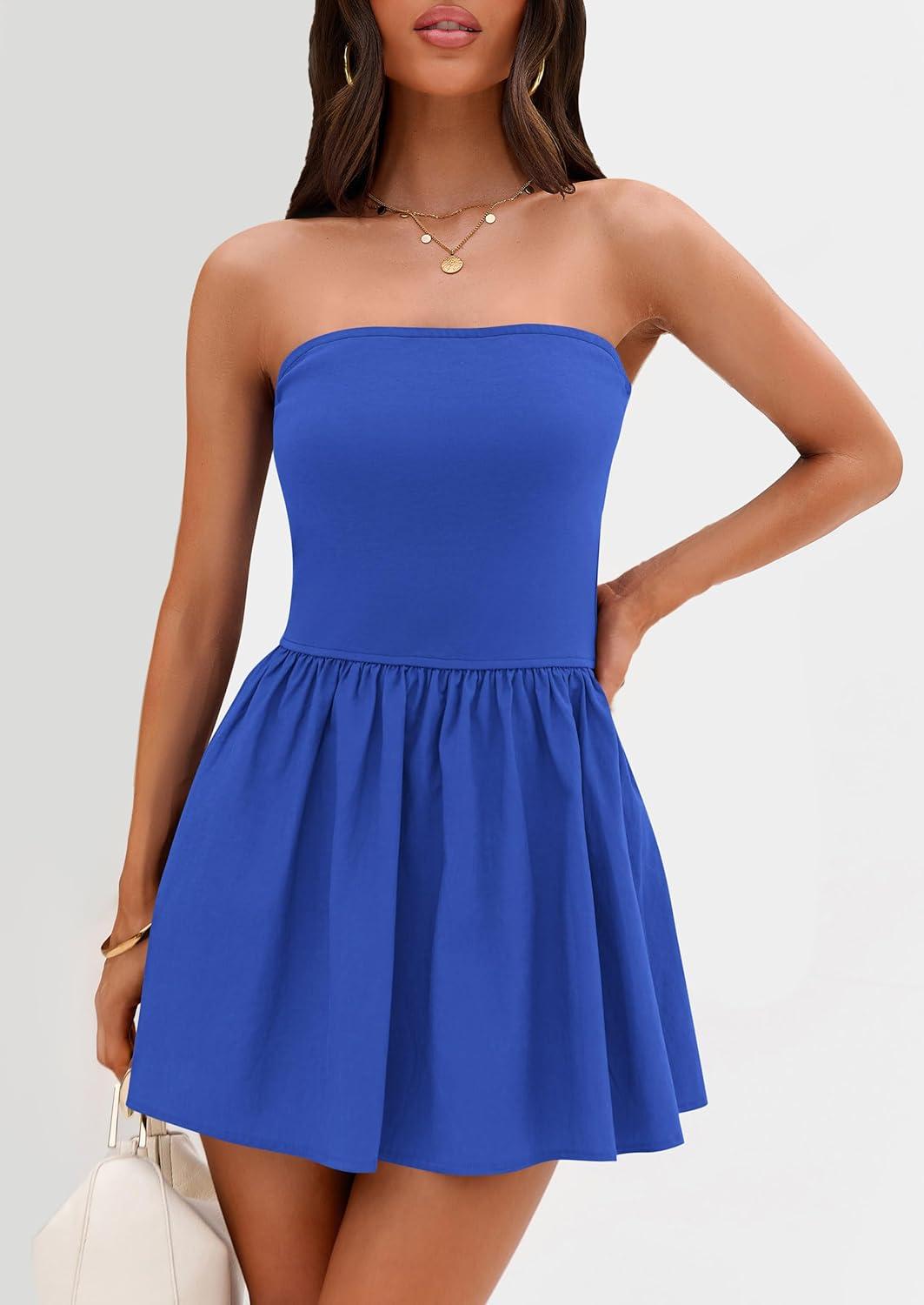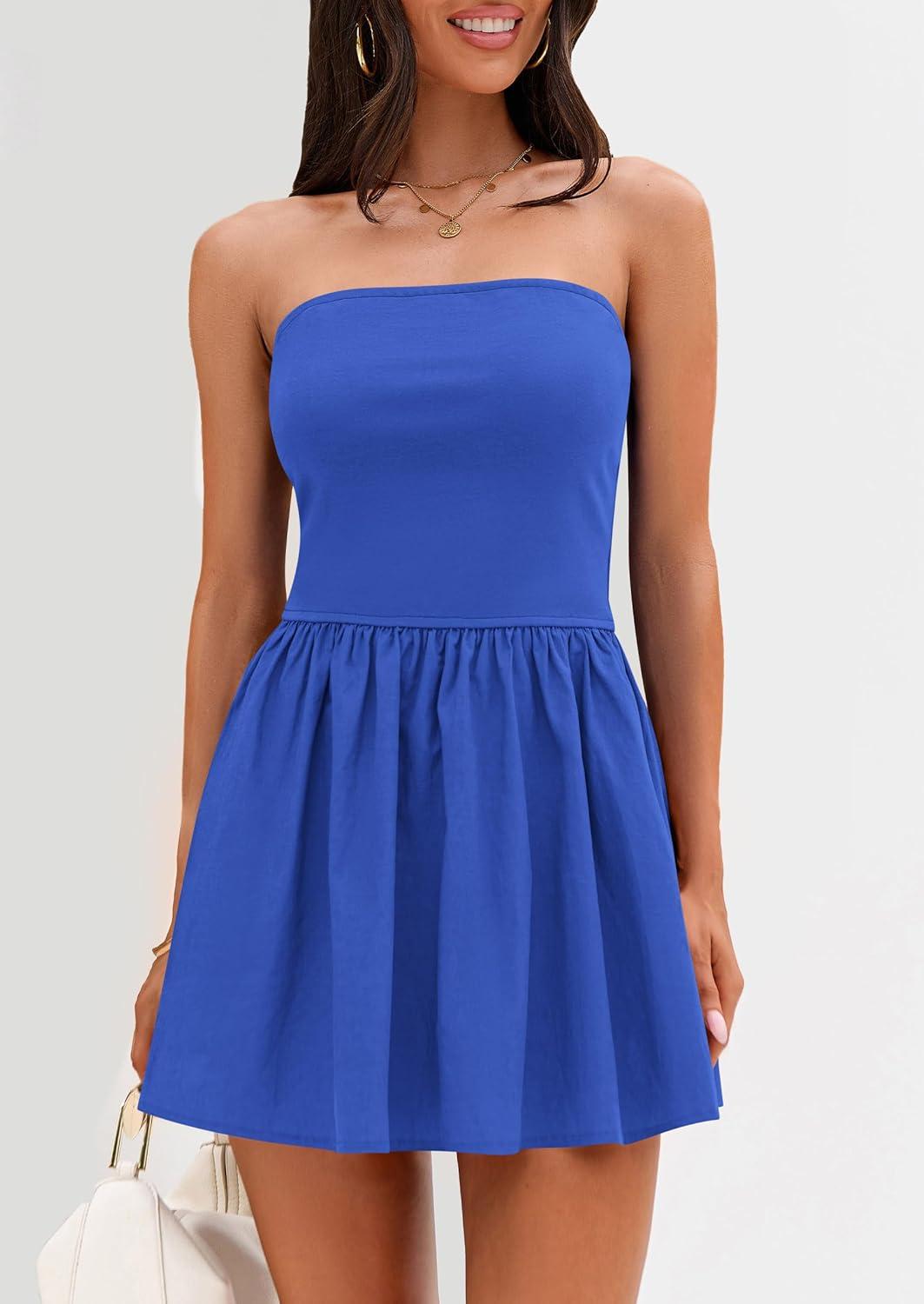PRETTYGARDEN Women's Summer Strapless Mini Party Dress 2025 Casual Tube Top Ruffle A Line Short Patchwork Sundresses(Royal Blue)