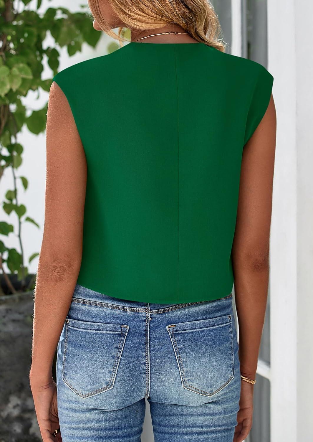 PRETTYGARDEN Women's Summer Suit Vest 2025 Dressy Casual Crop Tops Business Work Office Clothes Trendy Blazer Waistcoat(Green)