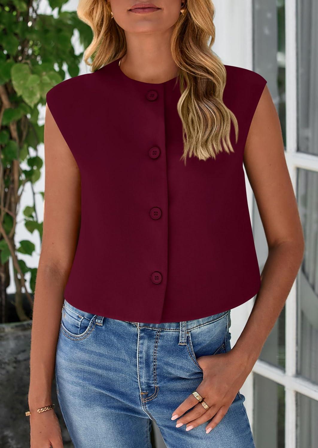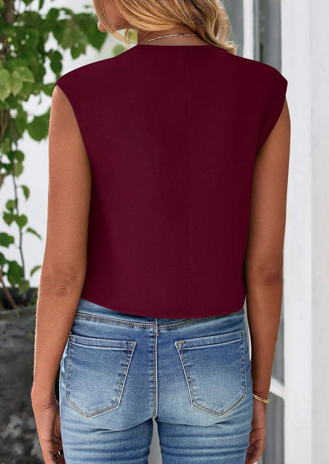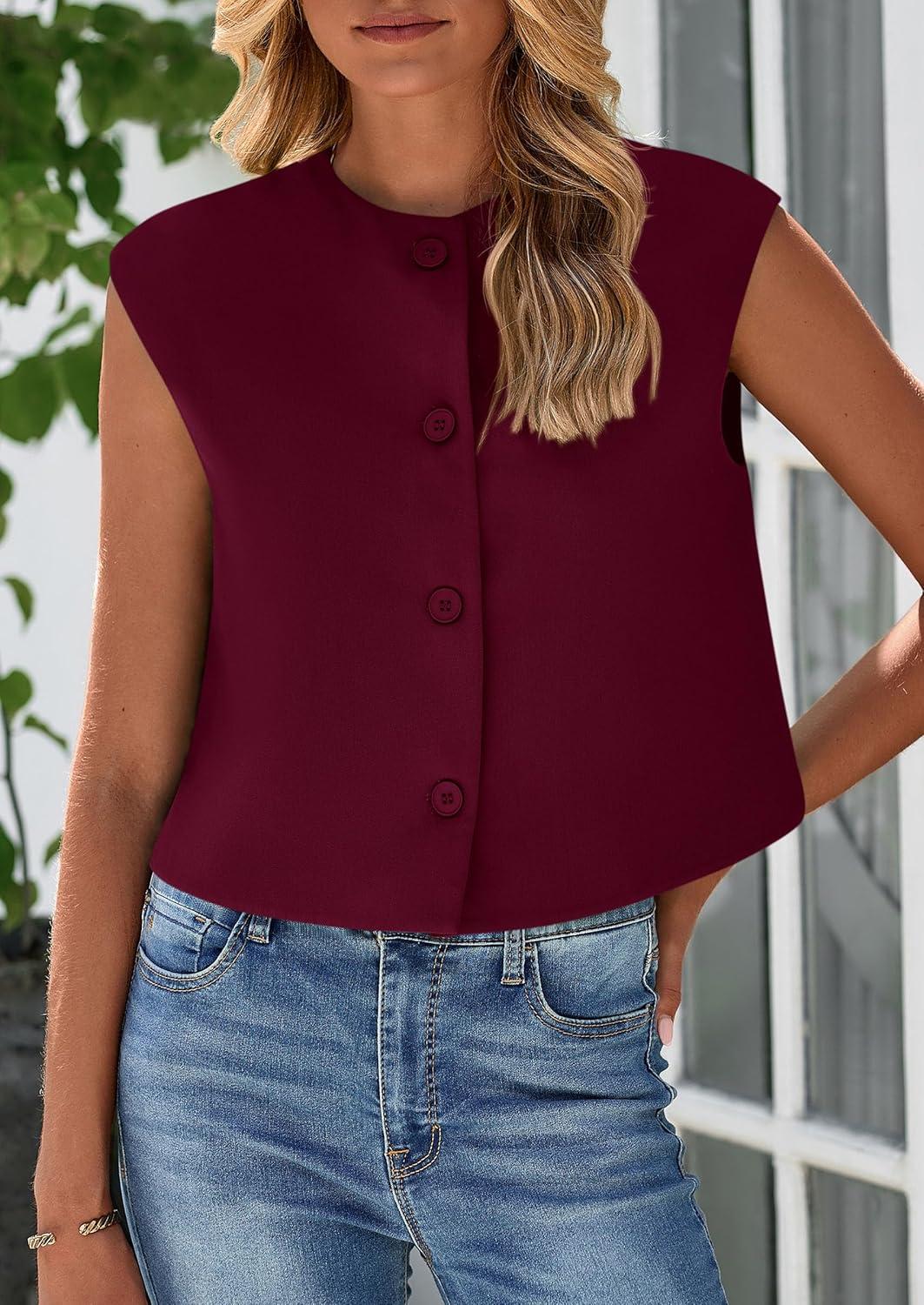 PRETTYGARDEN Women's Summer Suit Vest 2025 Dressy Casual Crop Tops Business Work Office Clothes Trendy Blazer Waistcoat(Wine Red)