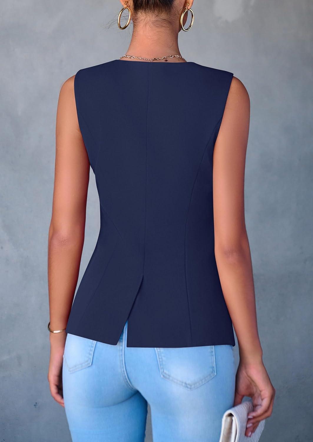 PRETTYGARDEN Women’s Summer Suit Vest Tops 2025 Dressy Business Casual Sleeveless Button Down Trendy Fashion Blazer Waistcoat(Dark Blue)