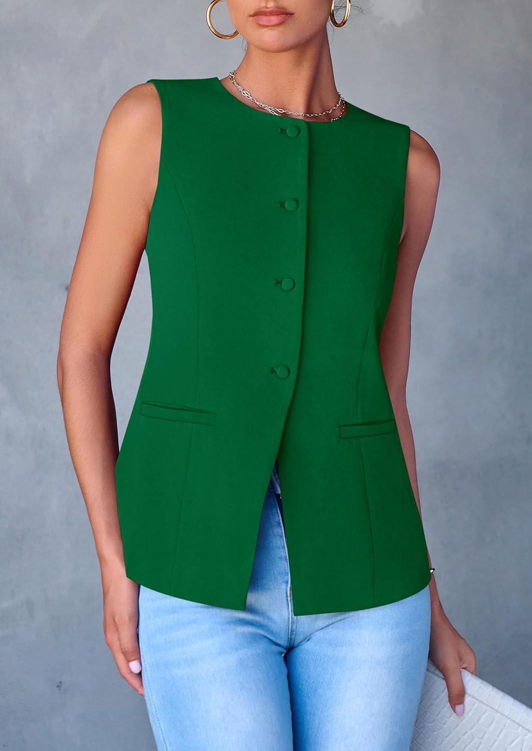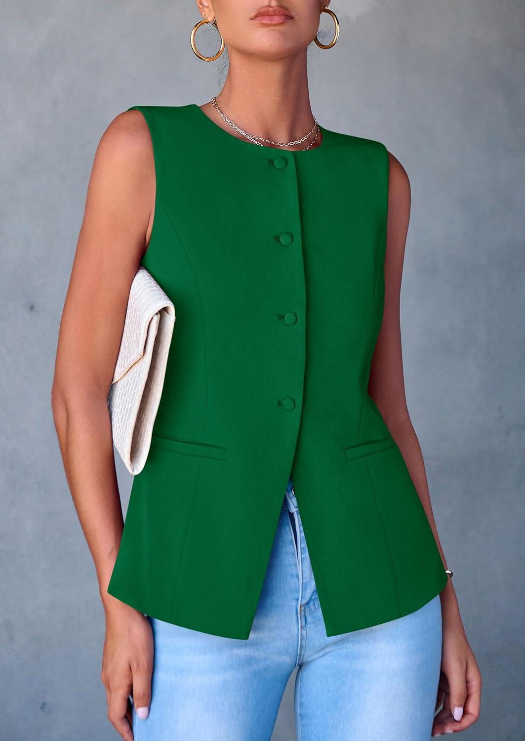 PRETTYGARDEN Women's Summer Suit Vest Tops 2025 Dressy Business Casual Sleeveless Button Down Trendy Fashion Blazer Waistcoat(Green)