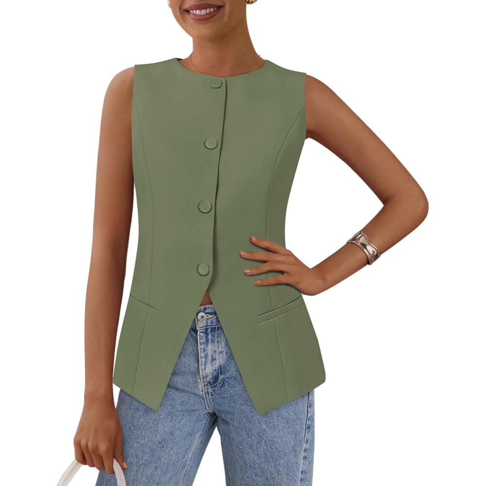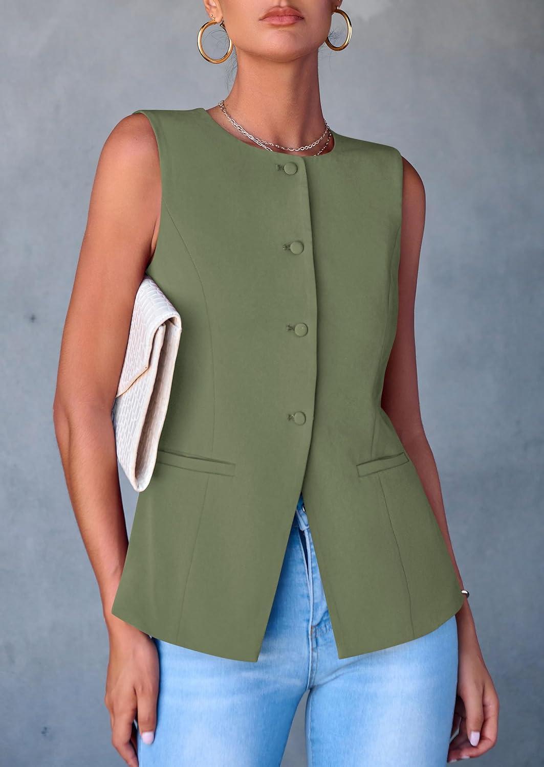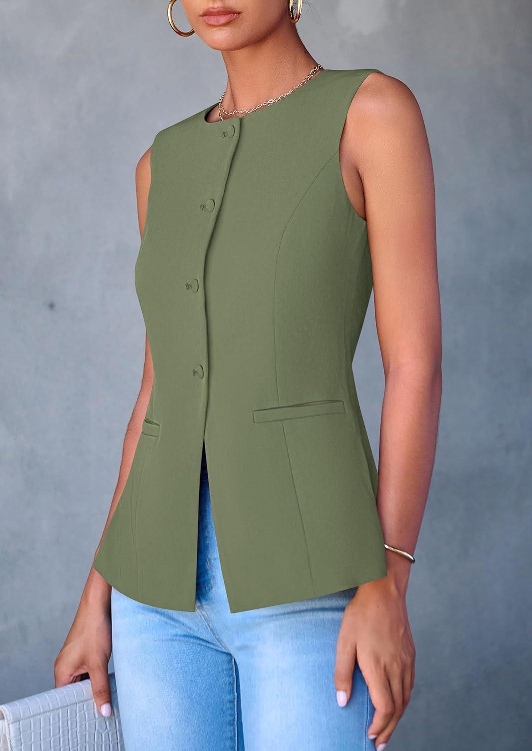 PRETTYGARDEN Women's Summer Suit Vest Tops 2025 Dressy Business Casual Sleeveless Button Down Trendy Fashion Blazer Waistcoat(Light Green)
