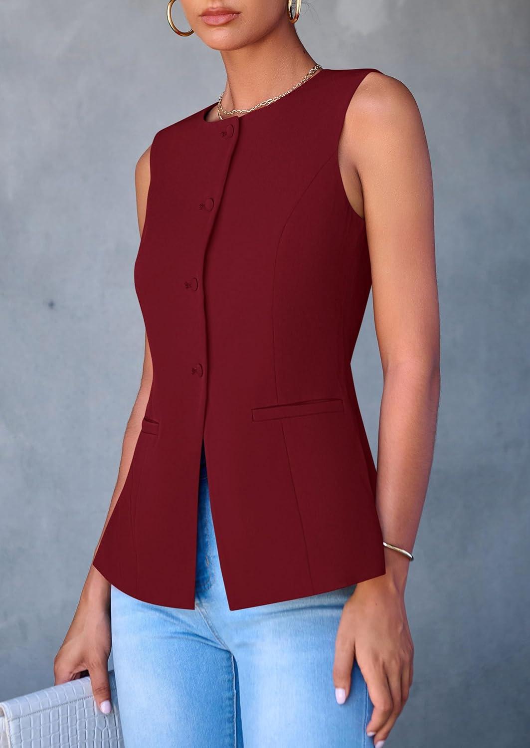PRETTYGARDEN Women's Summer Suit Vest Tops 2025 Dressy Business Casual Sleeveless Button Down Trendy Fashion Blazer Waistcoat(Red)