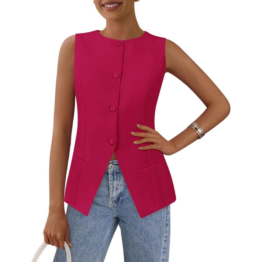 PRETTYGARDEN Women’s Summer Suit Vest Tops 2026 Dressy Business Casual Sleeveless Button Down Trendy Fashion Blazer Waistcoat(Magenta)