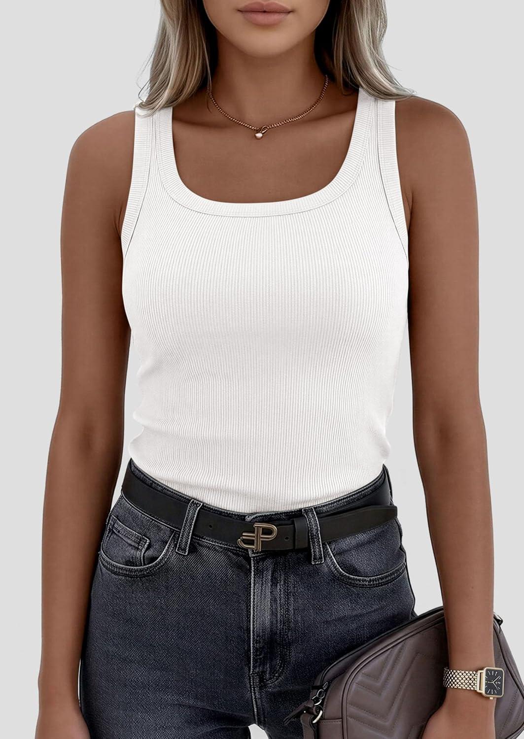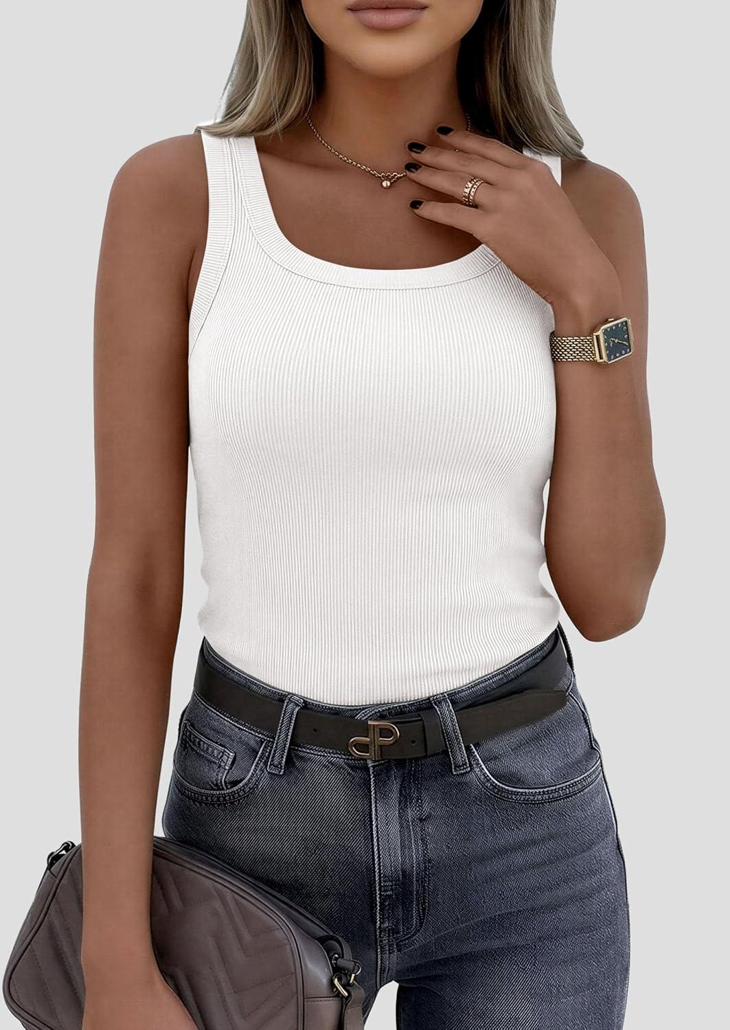 Be the first to review “PRETTYGARDEN Womens Summer Tops 2026 Spring Cute Sleeveless Scoop Neck Workout Tank Top Casual Ribbed Knit Basic Cami Shirts(White)” Cancel reply